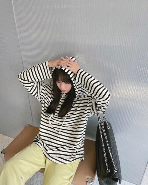 ボーダーパーカーフーディー長袖トップス レディースファッション 特集 S M L