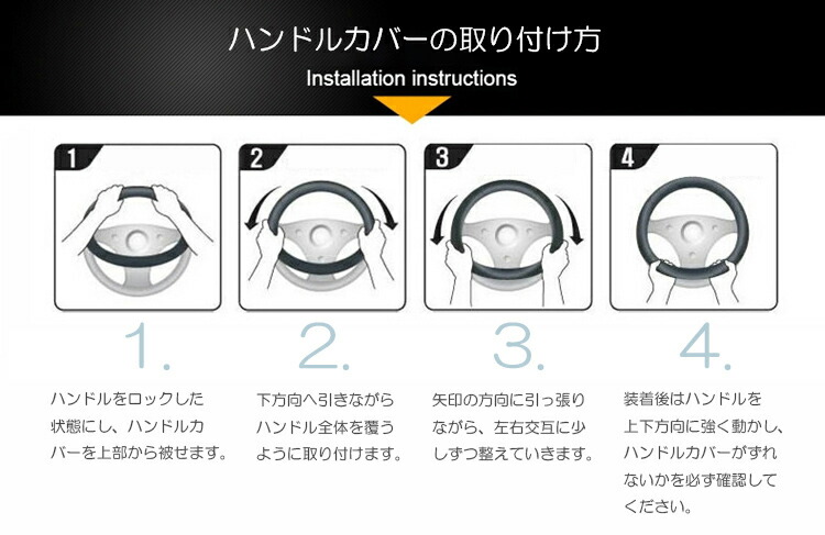車のハンドルにかぶせるだけで簡単に装着できる!