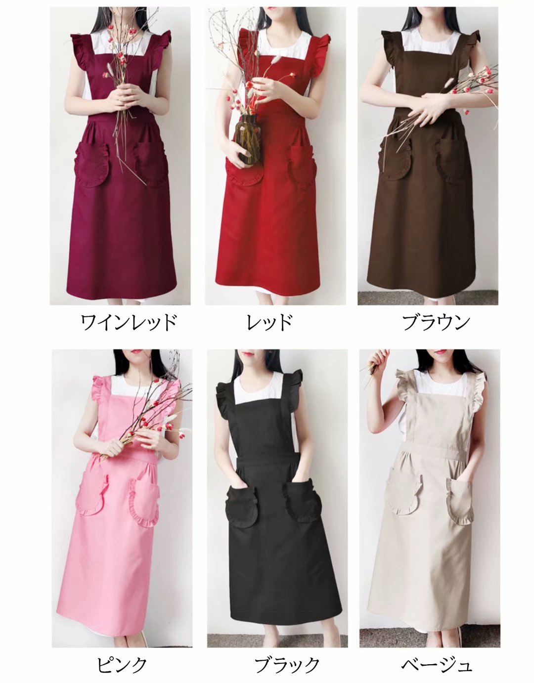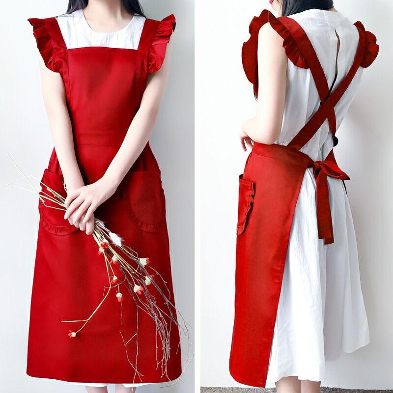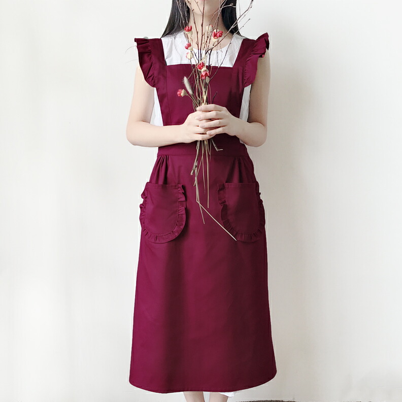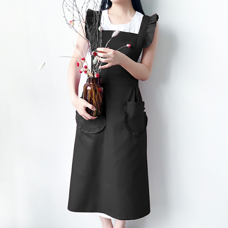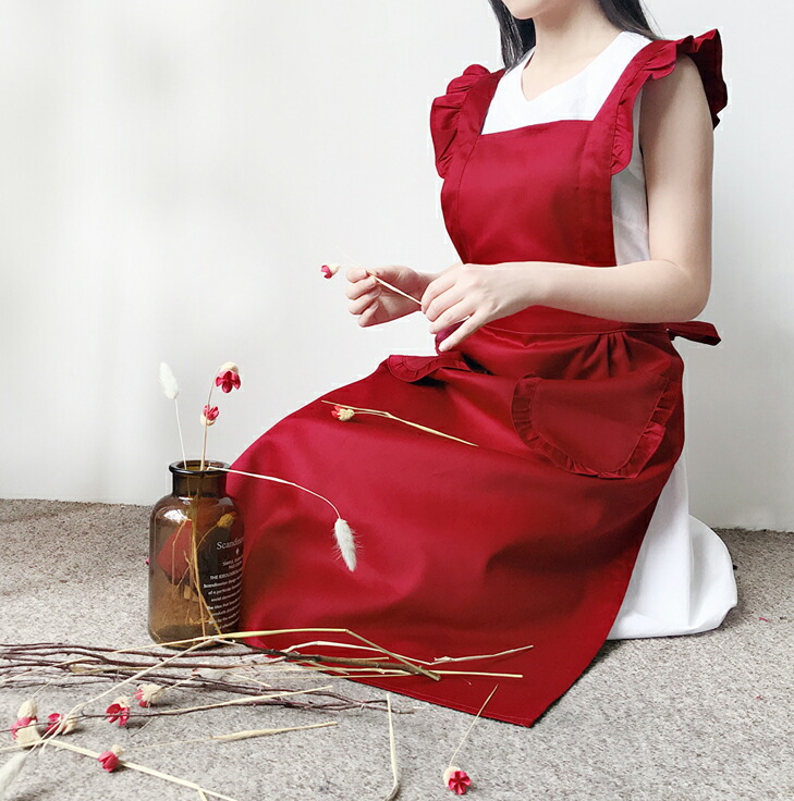 フリルが可愛い メイド風 エプロン ひ キッチン用品 食器 調理器具 続々登場 ブラック ワインレッド レッド ピンク ベージュ ブラウン