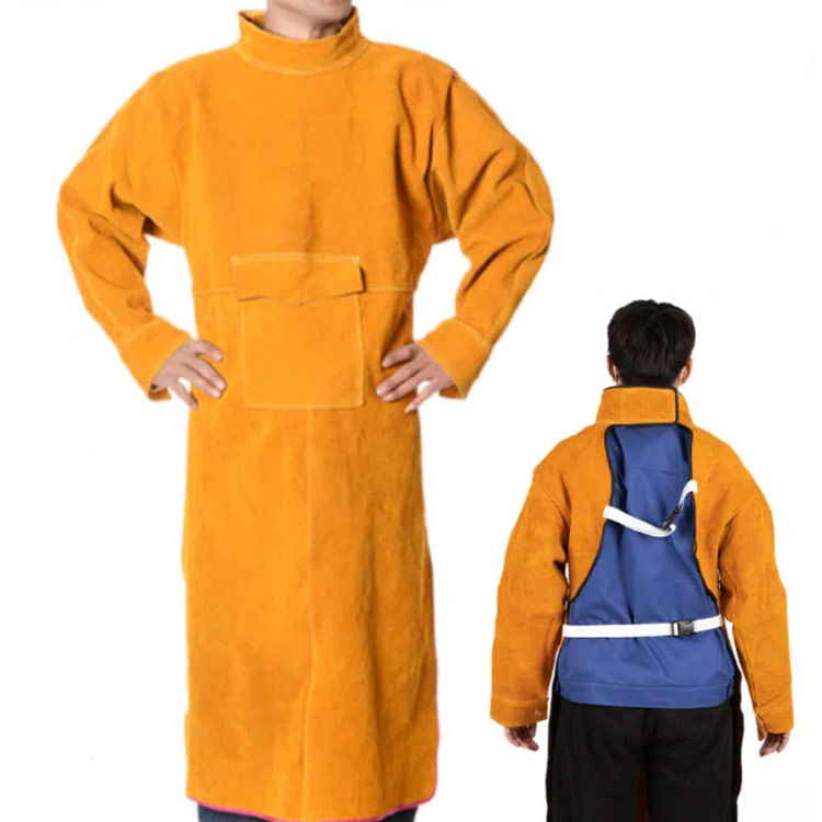 溶接エプロン 作業 革 レザー 溶接用 作業服 エプロン 豊富な品揃え 膝丈(105CM)-ハイカラー ふくらはぎ丈(120CM)-ハイカラー 膝丈(105CM)-ローカラー ふくらはぎ丈(120CM)-ローカラー S L