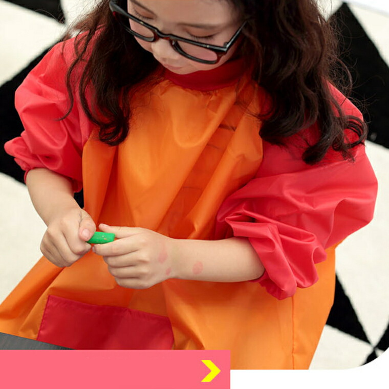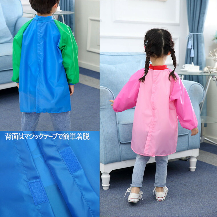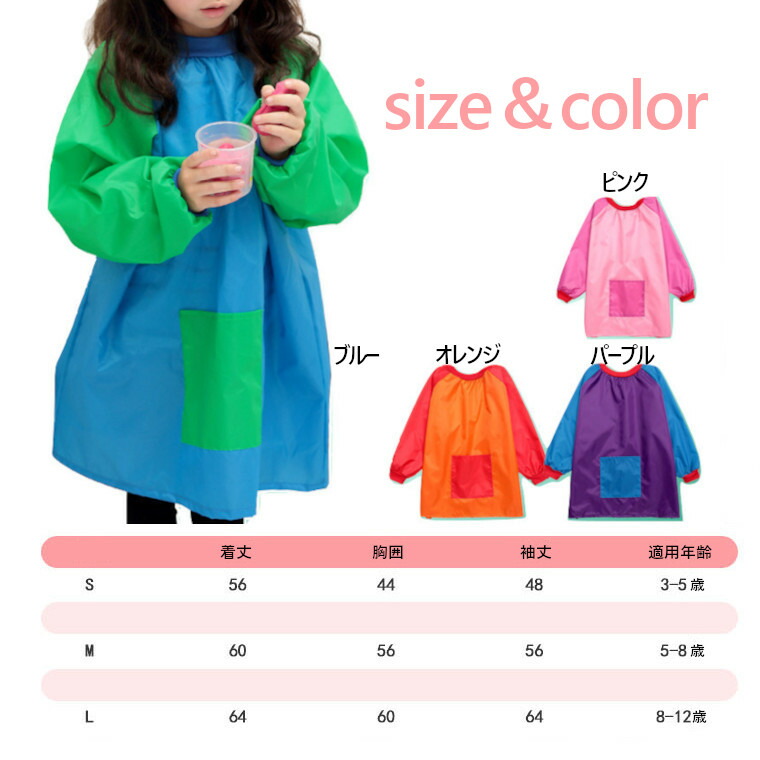 キッズ エプロン 料理 習字 絵画 習 S M L ピンク オレンジ ブルー パープル