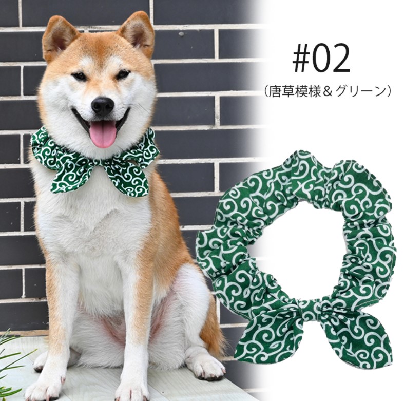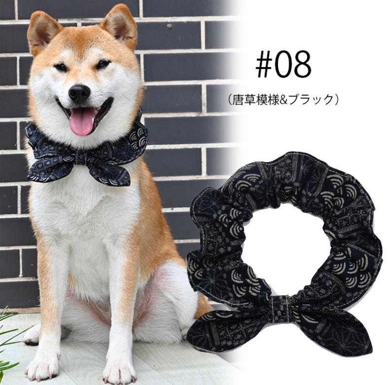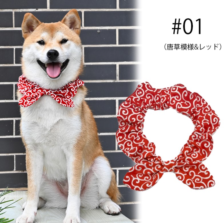 首に通すだけのお手軽おしゃれ ペットグッズ 犬 唐草模様 アクセサリー リボン風 犬猫兼用 スカーフ 首輪 犬用 猫用 小型犬 中型犬 和柄 ネック 風呂敷首巻 かわいい おしゃれ バンダナ
