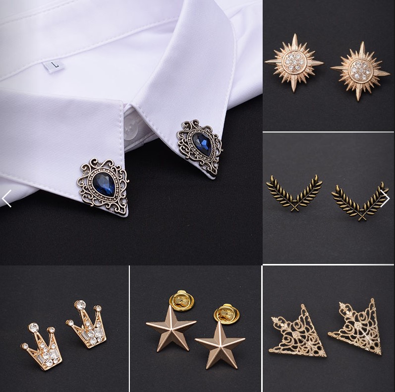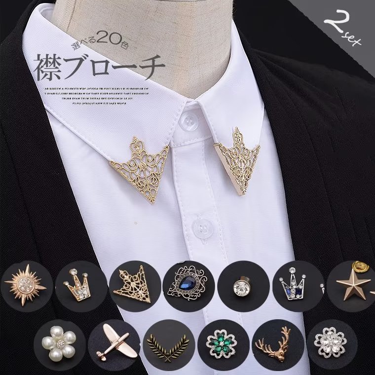 お手持ちのシャツの襟に付けるだけで華やかに 2組セット シャツブローチ 襟ブローチ ストール留め 男女兼用 ピンブローチ ジュエリー ラインストーン クセサリー
