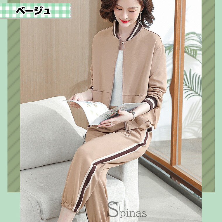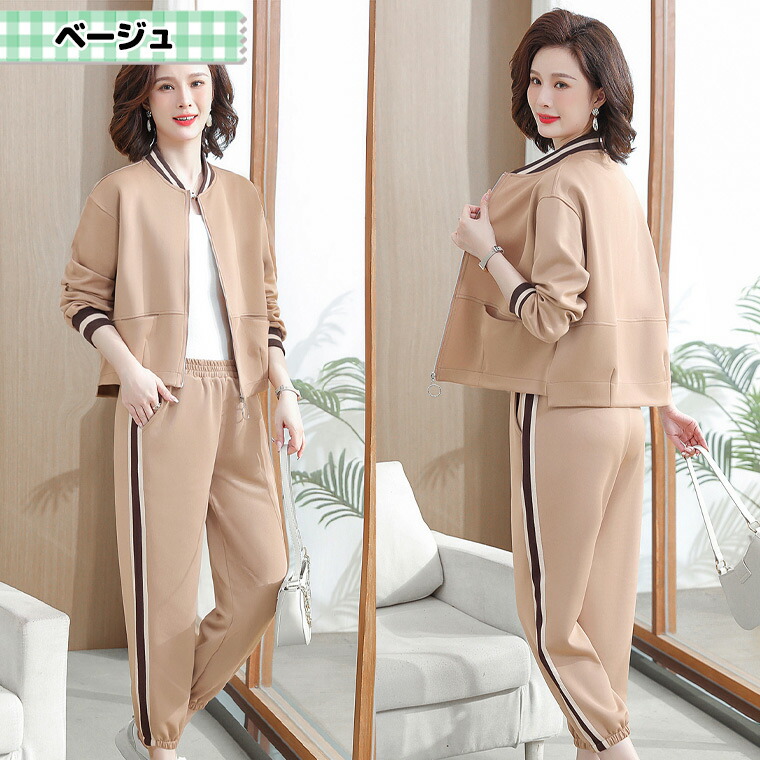 4XLサイズまで お洒落でアクティブな スポーツウェア アクセサリー ジャージ レディースジャージ セットアップ 通販 ベージュ ネイビー L XL 2XL 3XL 4XL