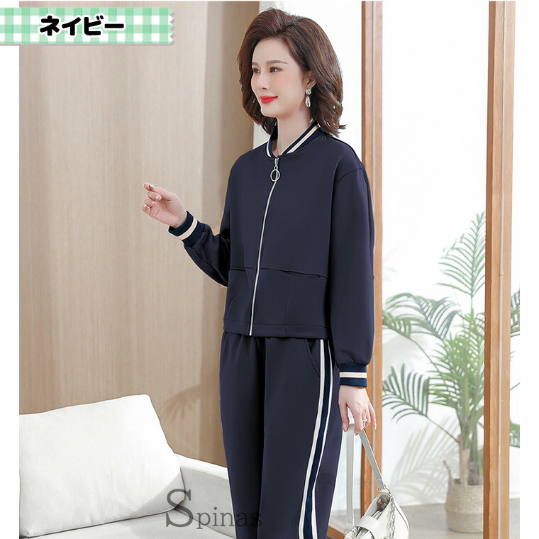 4XLサイズまで お洒落でアクティブなミセスに 60代 70代 上品シルエット ジャージ上下 襟無し 襟なし レディース スポーツウェア スウェット スポーツジム 運動 上下セット シニア ジム
