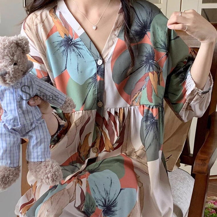 産前から産後まで 授乳口つき マタニテ キッズ ベビー マタニティ 特集 千鳥格子チェック 植物柄 M L XL 2XL 3XL