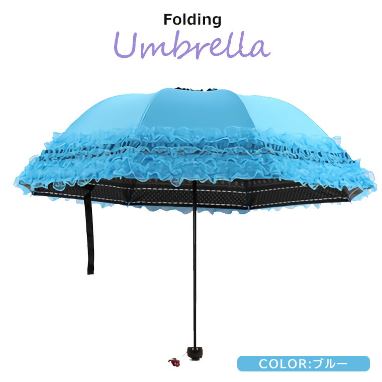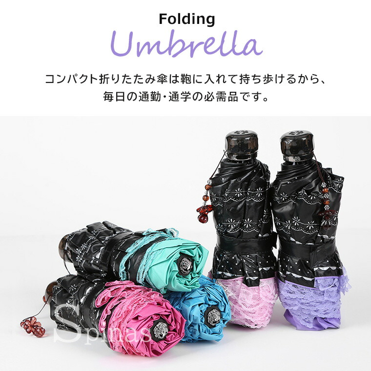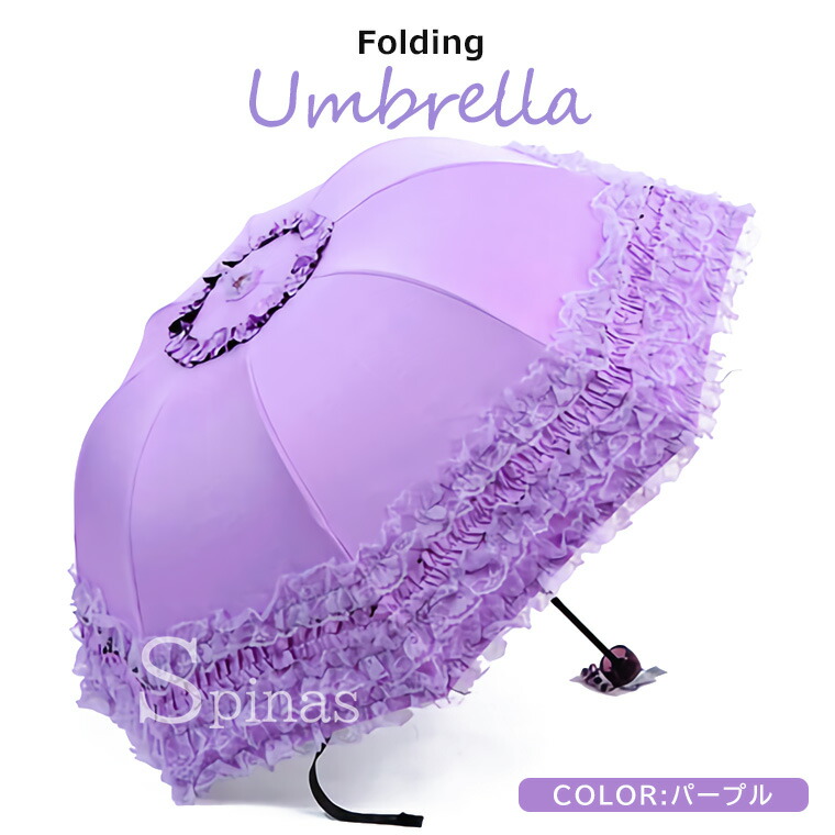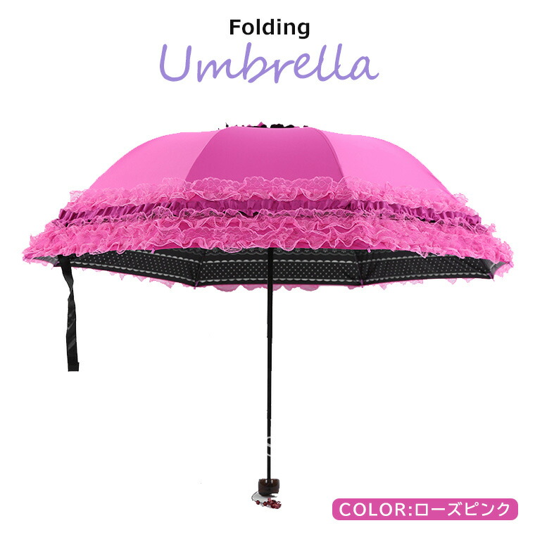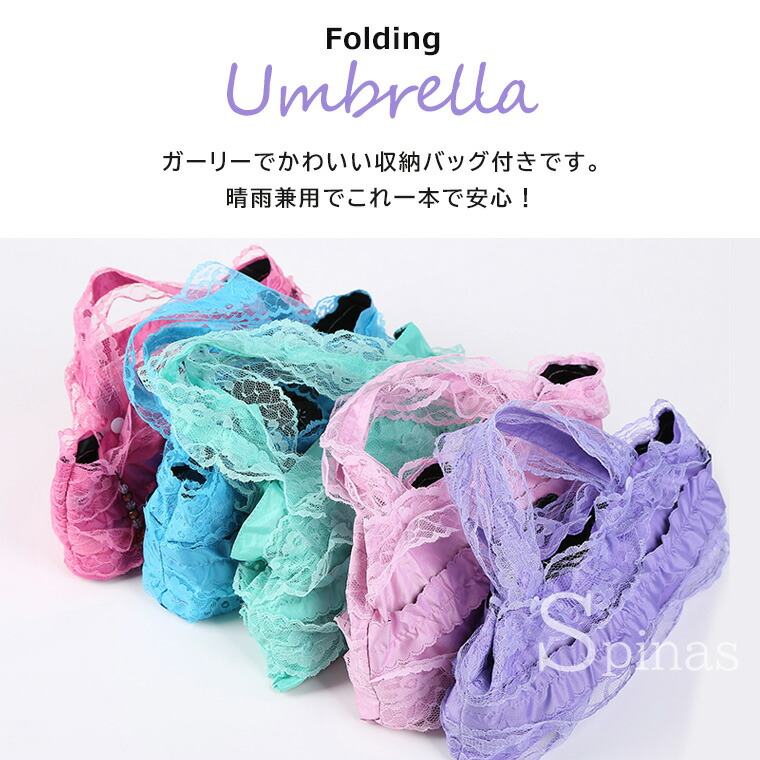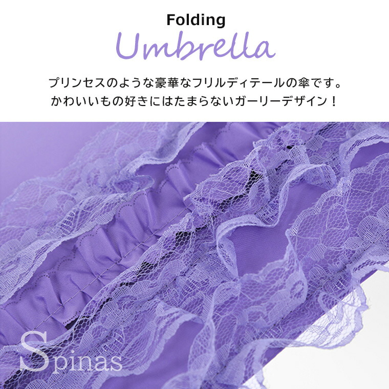 三つ折り傘 フリルレース 折りたたみ バッグ 小物 ブランド雑貨 豊富 パープル ピンク ブルー ピーチピンク ローズピンク ブラック