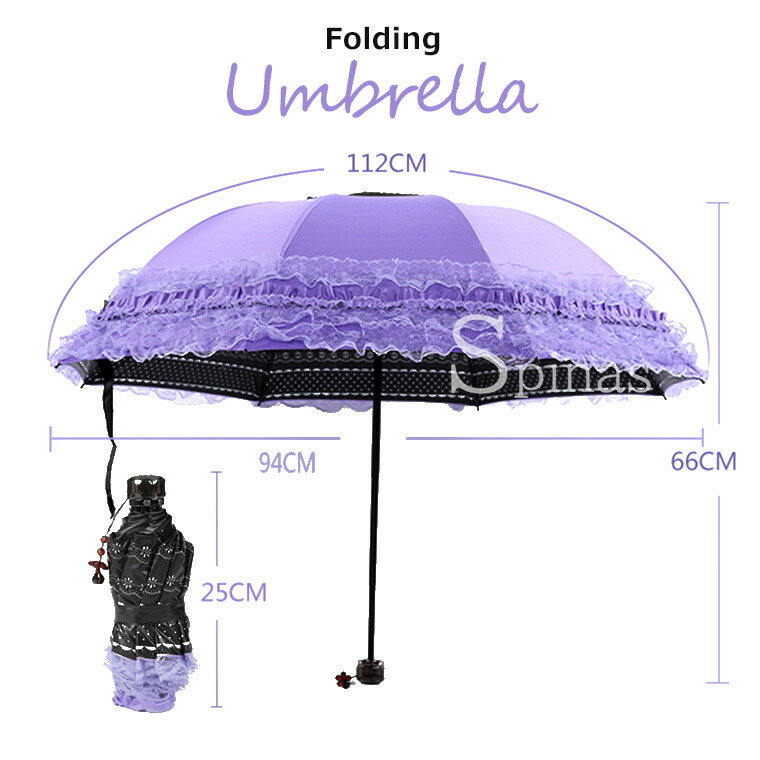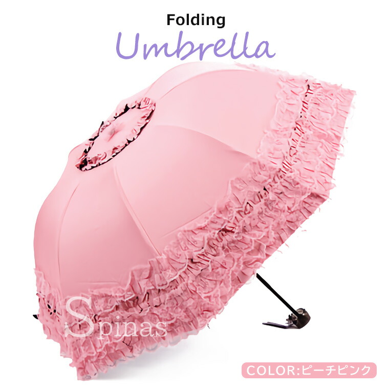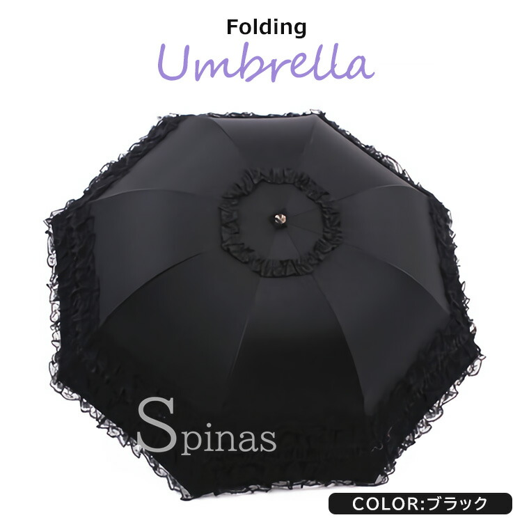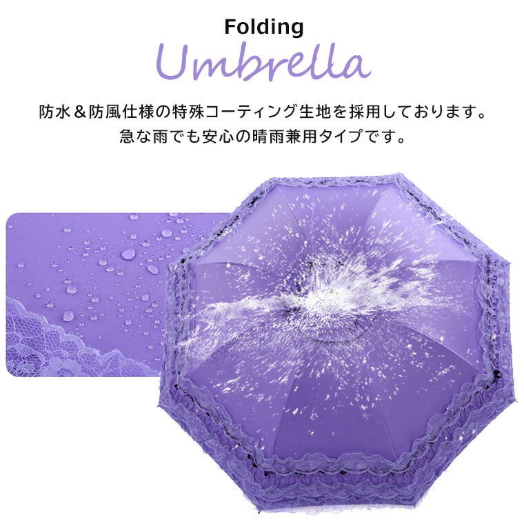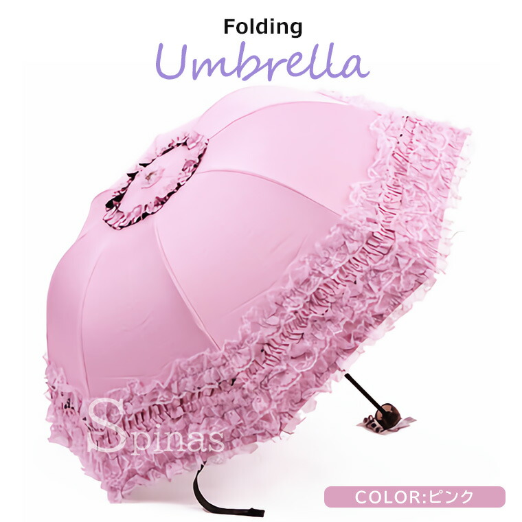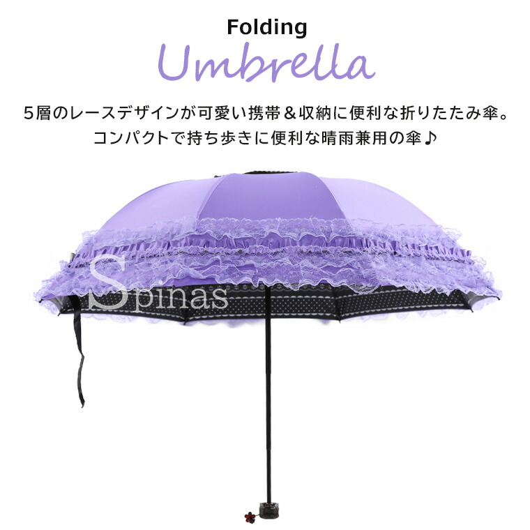 三つ折り傘 フリルレース 折りたたみ バッグ 小物 ブランド雑貨 豊富 パープル ピンク ブルー ピーチピンク ローズピンク ブラック