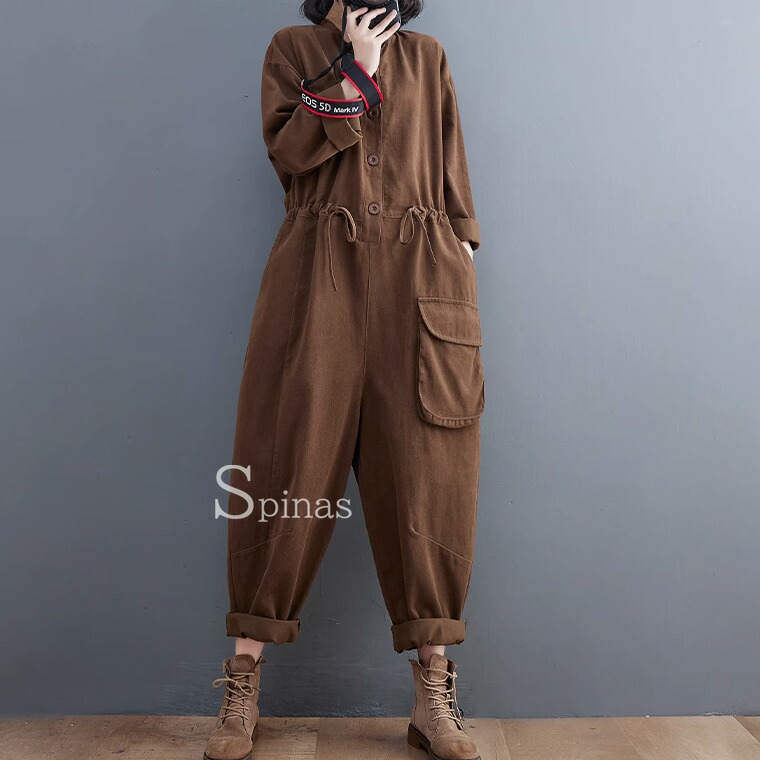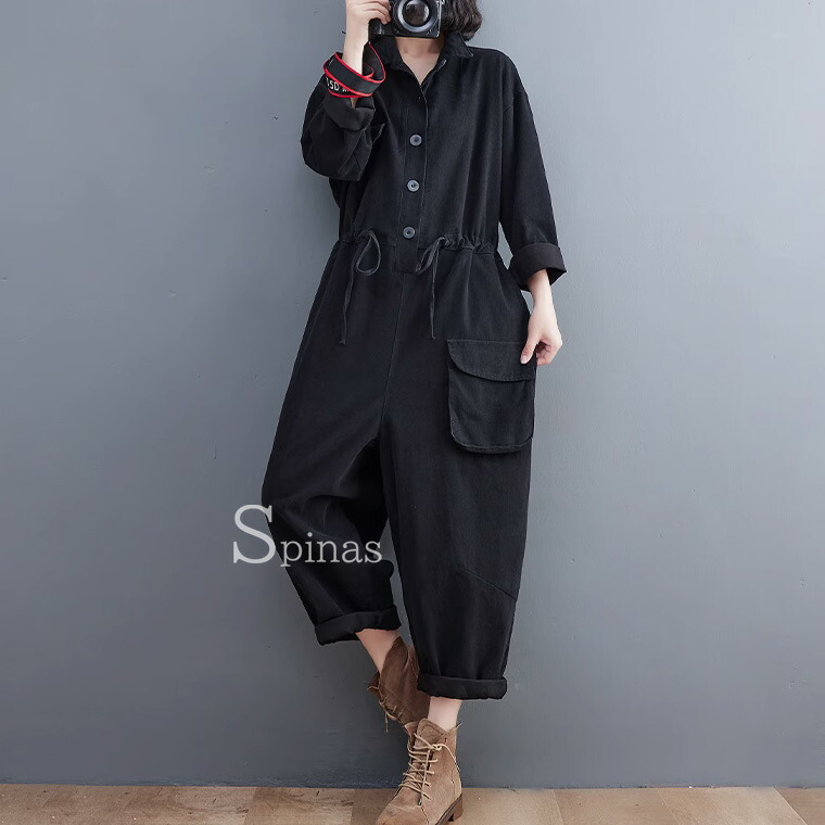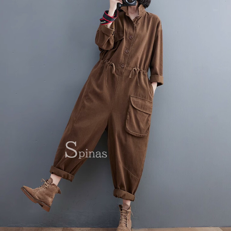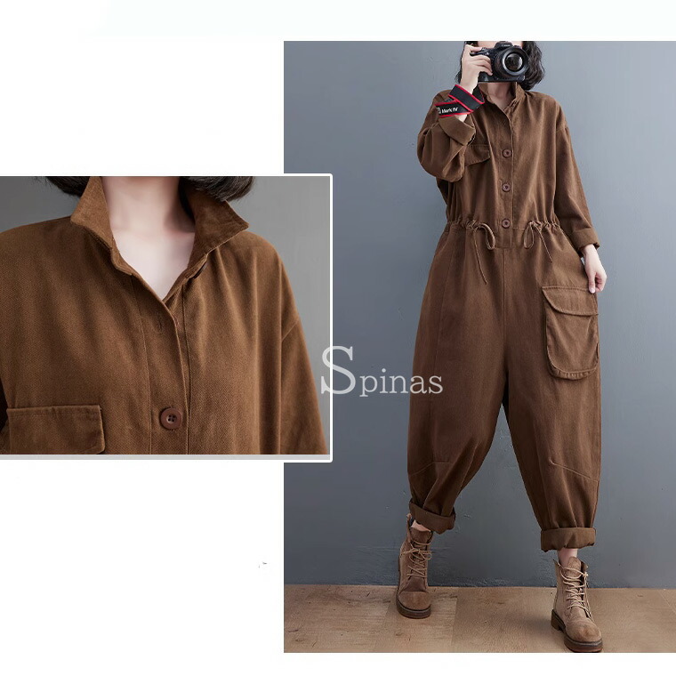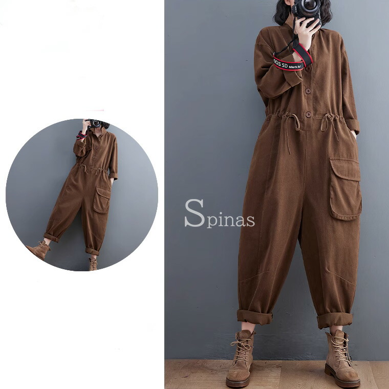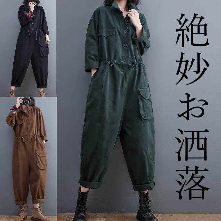 ウエスト紐が美シルエットのポイント 3 オールインワン サロペット 続々入荷中 グリーン ブラック ブラウン L(M-L相当) XL 2XL