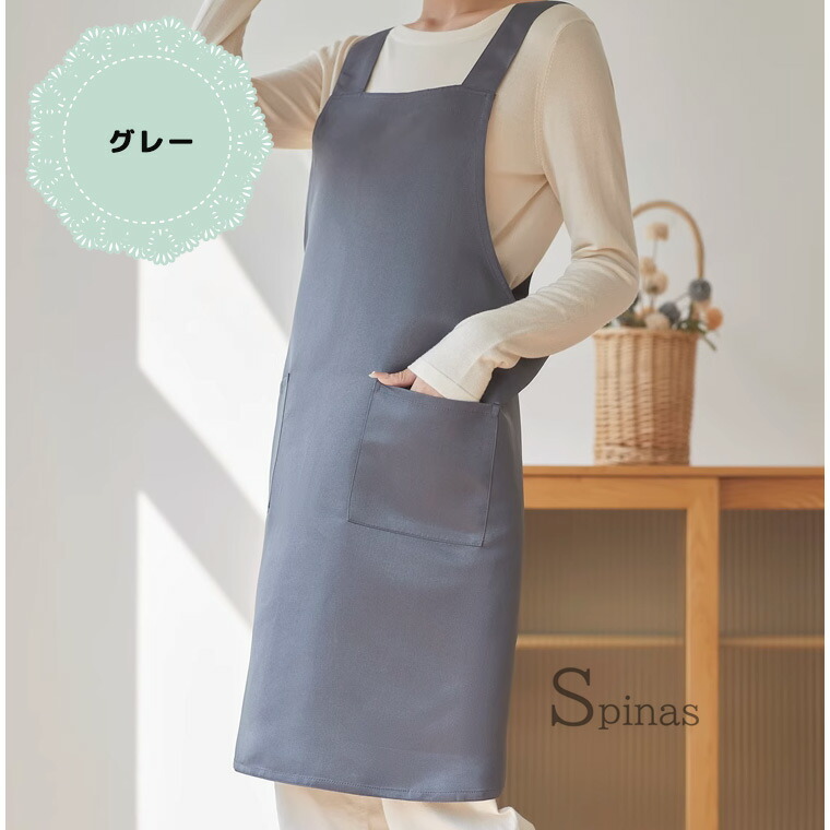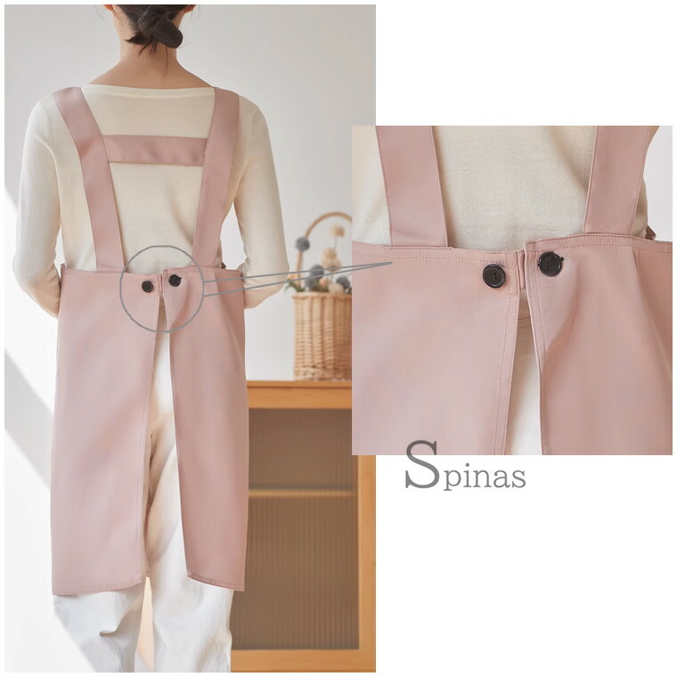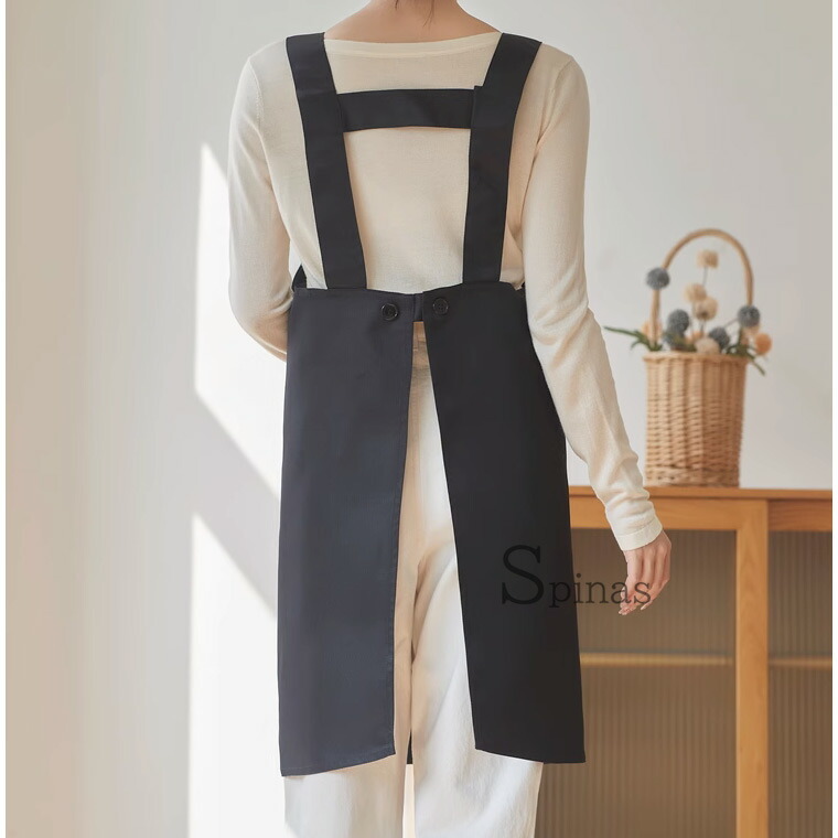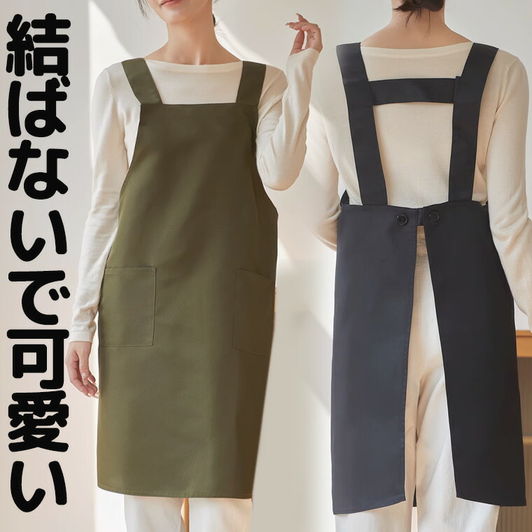 6カラー 撥水加工 後ろボタンで結ばずかわいい 綺麗カラー シンプルエプロン H型 ボタン チュニックエプロン ワンピース ミドル かぶる ワークエプロン カフェエプロン 北欧風