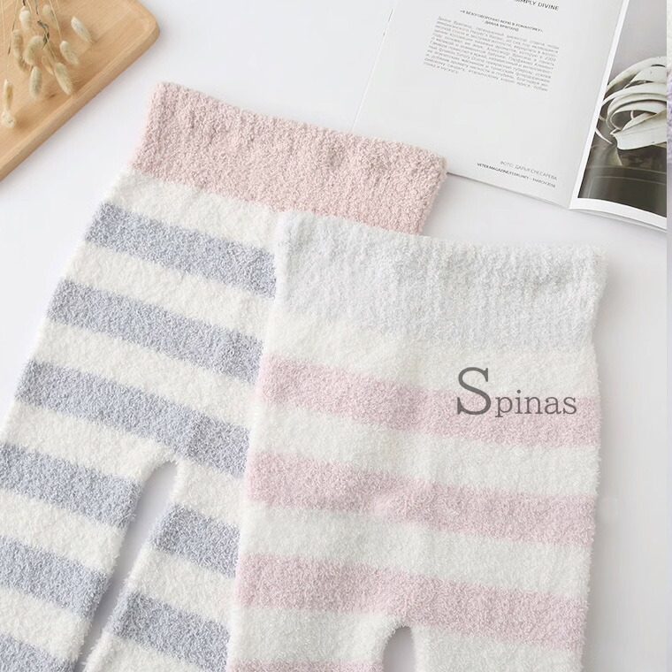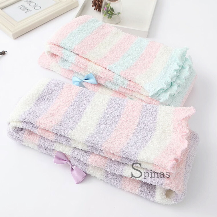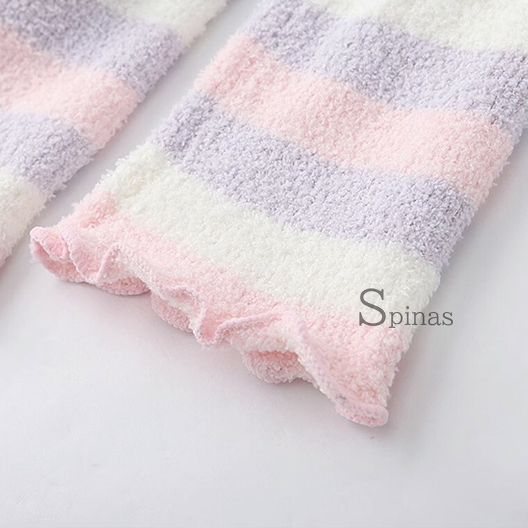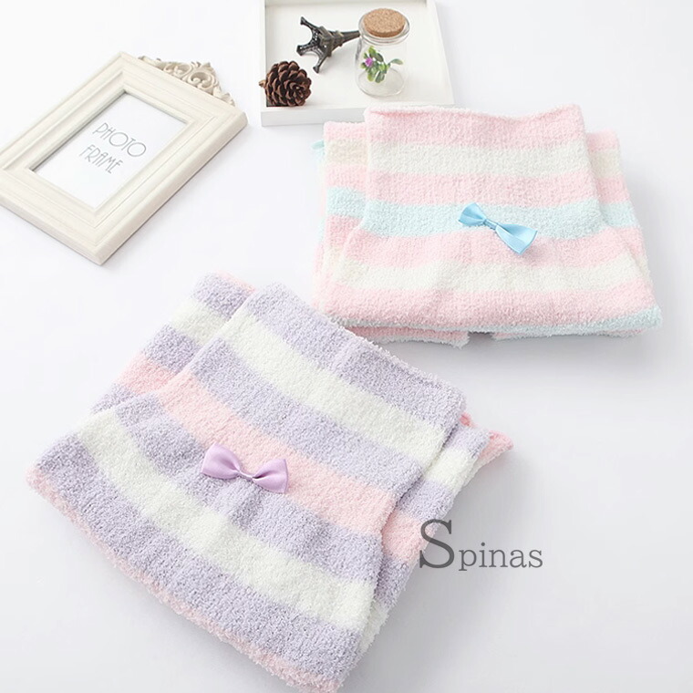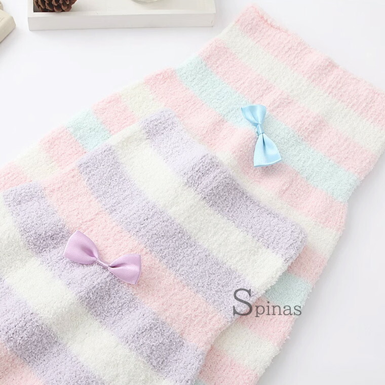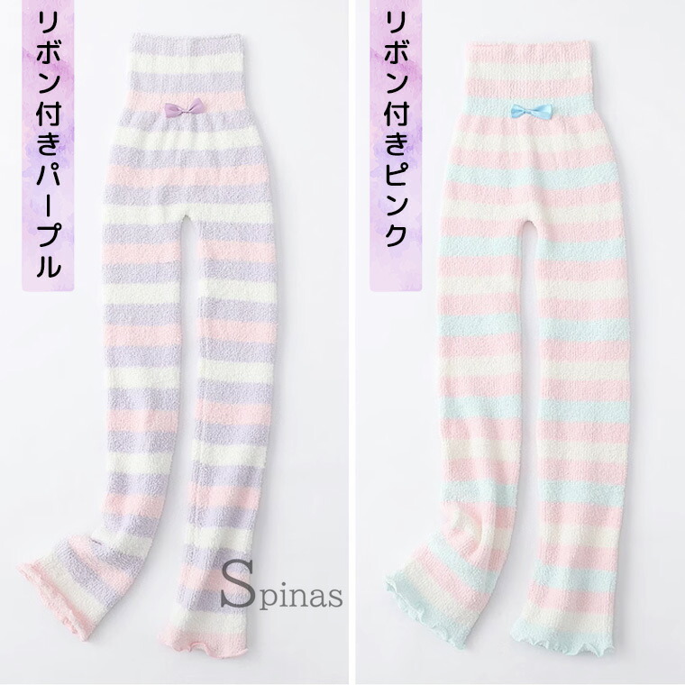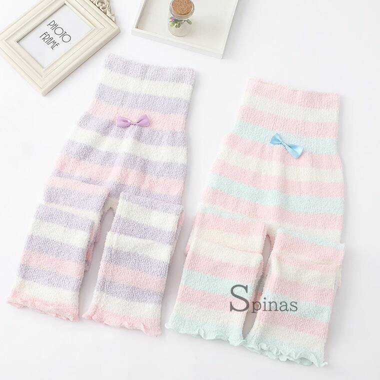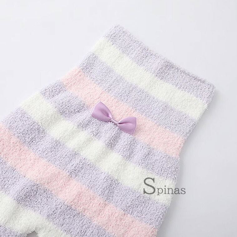 パステルカラー ボーダーもこもこ 腹巻 インナー 下着 ナイトウエア 続々入荷中 リボン付きパープル リボン付きピンク リボンなしグレー リボンなしピンク