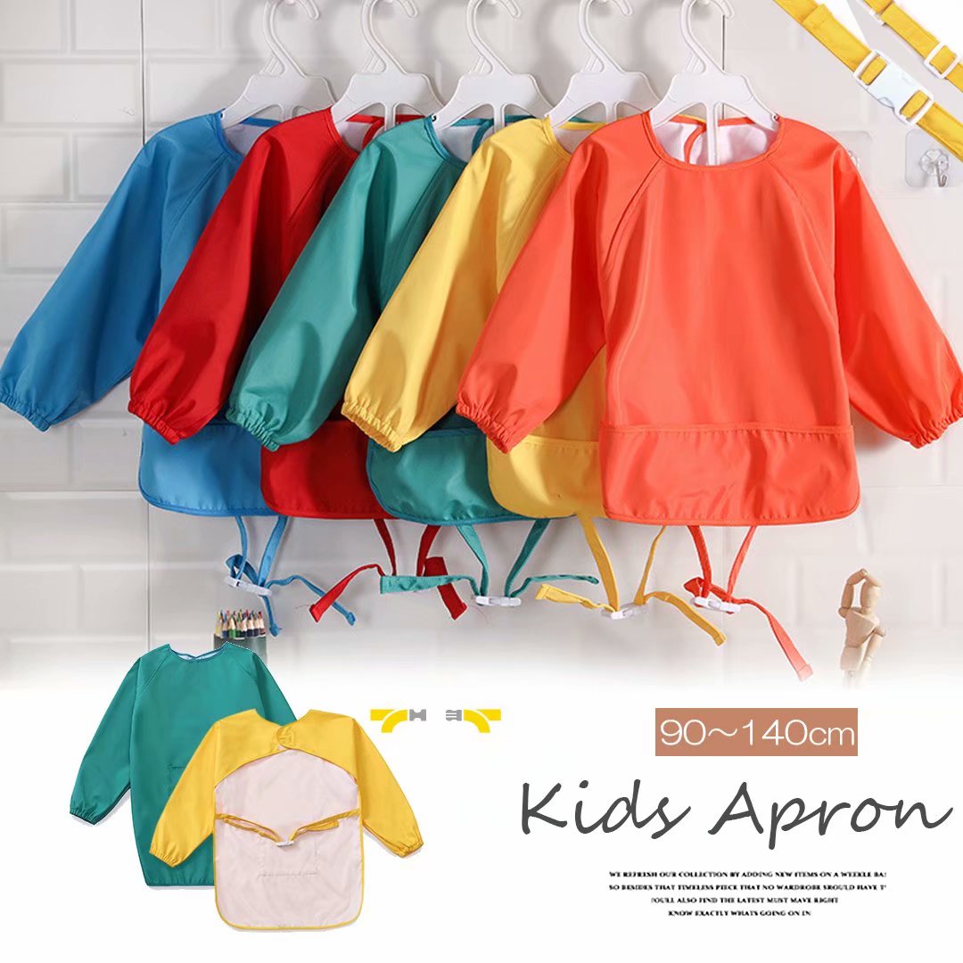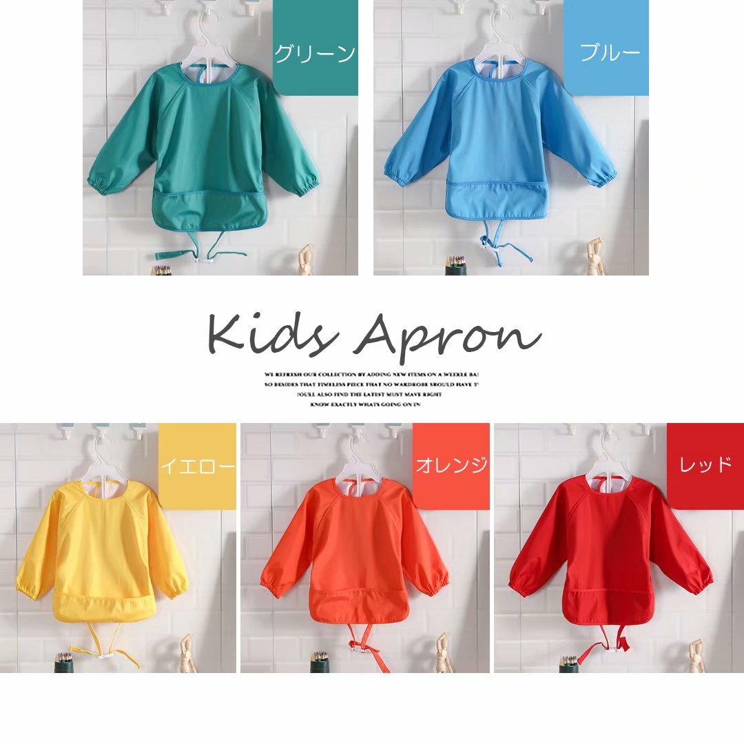 ゆったり着られる キッズ 子供用 エプ キッズ ベビー マタニティ 通販 グリーン ブルー イエロー オレンジ レッド 90-120cm 120-140cm