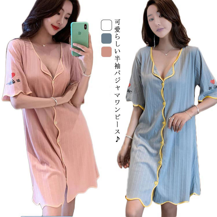 パジャマ ワンピース レディース 夏 インナー 下着 ナイトウエア 大人気! ブルー ホワイト ピンク M L XL 2XL