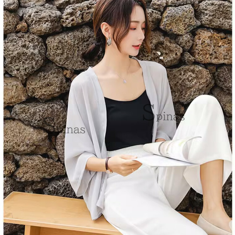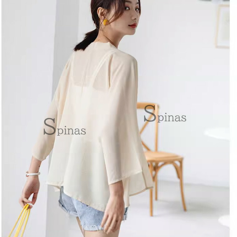大人の上品透け感 40代 50代 シアーカーディガン シースルカーディガン 七分袖 ショート丈 スキッパー ボレロ ふんわり ゆったり リラックス ブラウス 日焼け防止 シースルー 羽織り U 透け感