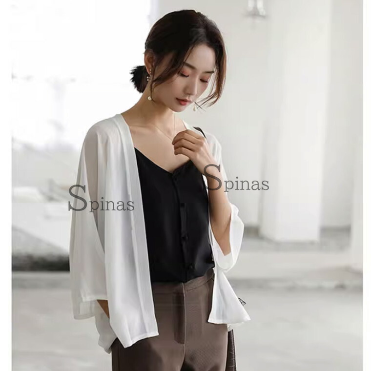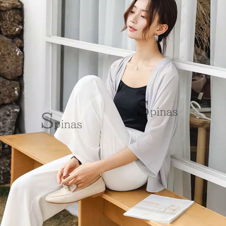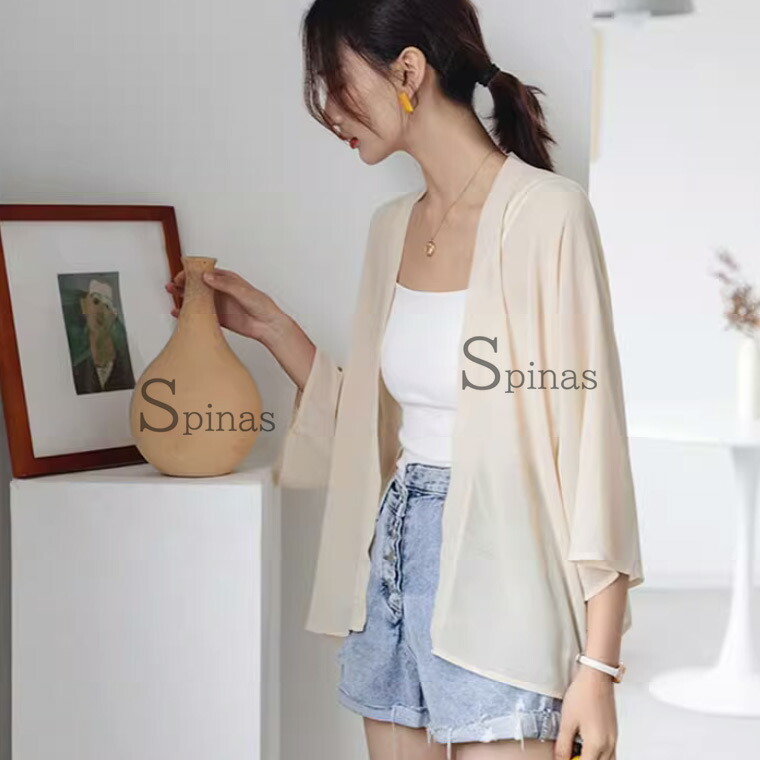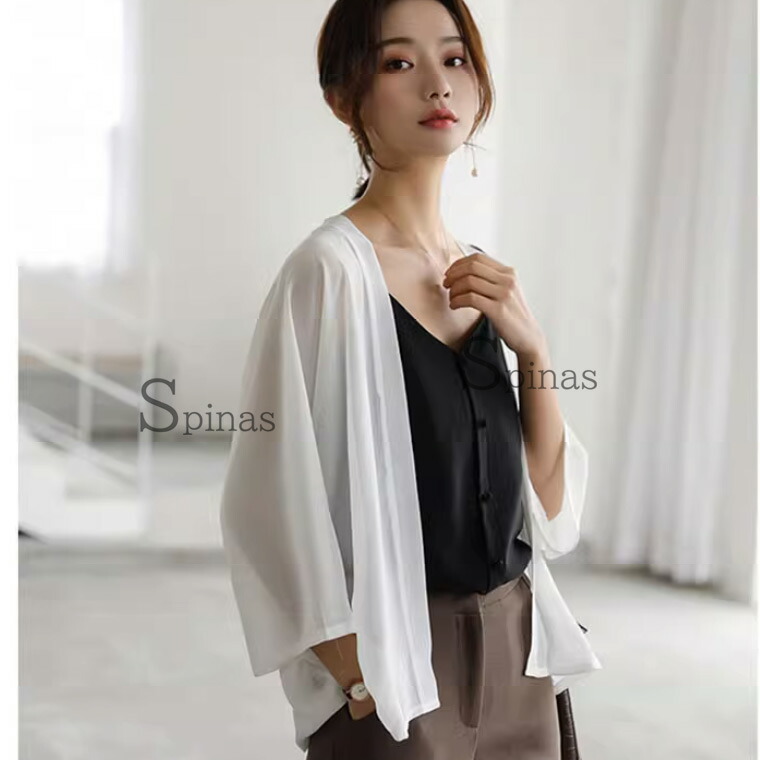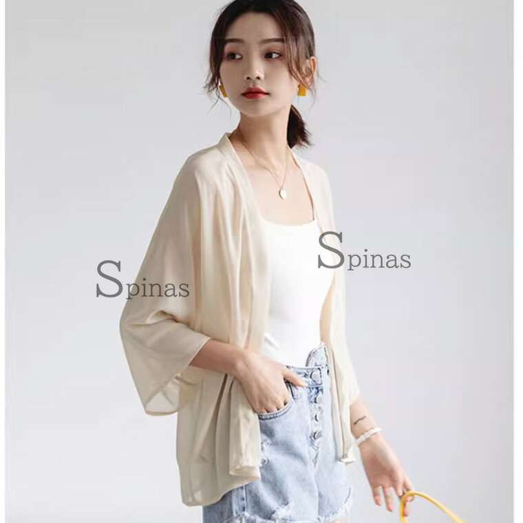 大人の上品透け感 40代 50代 シアーカーディガン シースルカーディガン 七分袖 ショート丈 スキッパー ボレロ ふんわり ゆったり リラックス ブラウス 日焼け防止 透け感 シースルー 羽織り UV対策 キナリ ホワイト プチプラ 送料無料