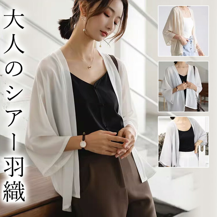 大人の上品透け感 40代 50代 シア トップス カーディガン ボレロ 続々入荷中 ホワイト アプリコット グレー S M L XL