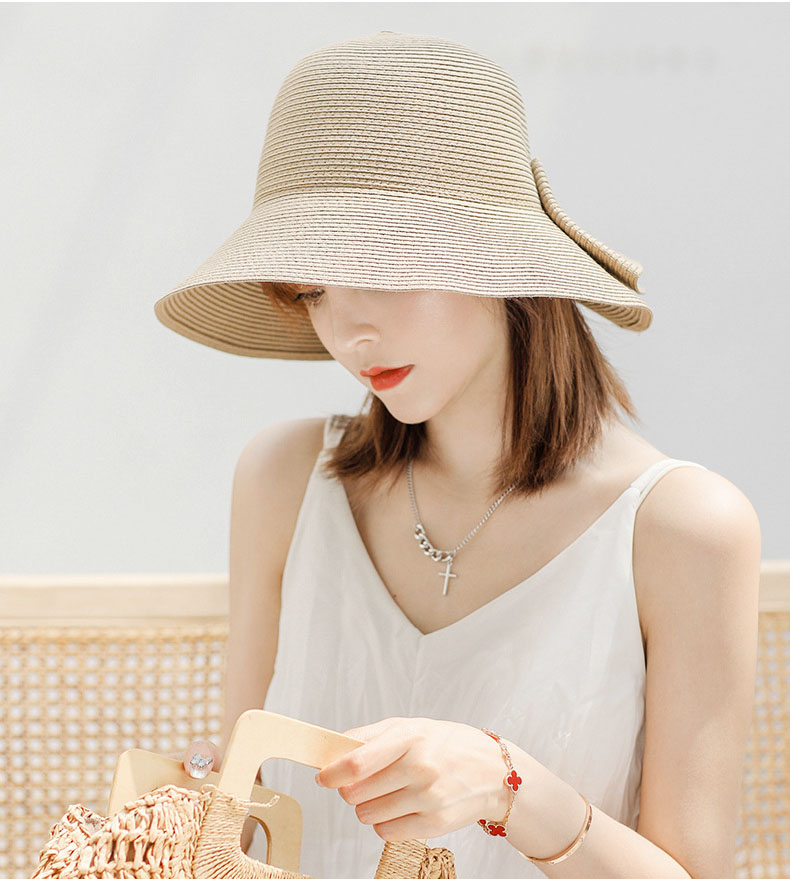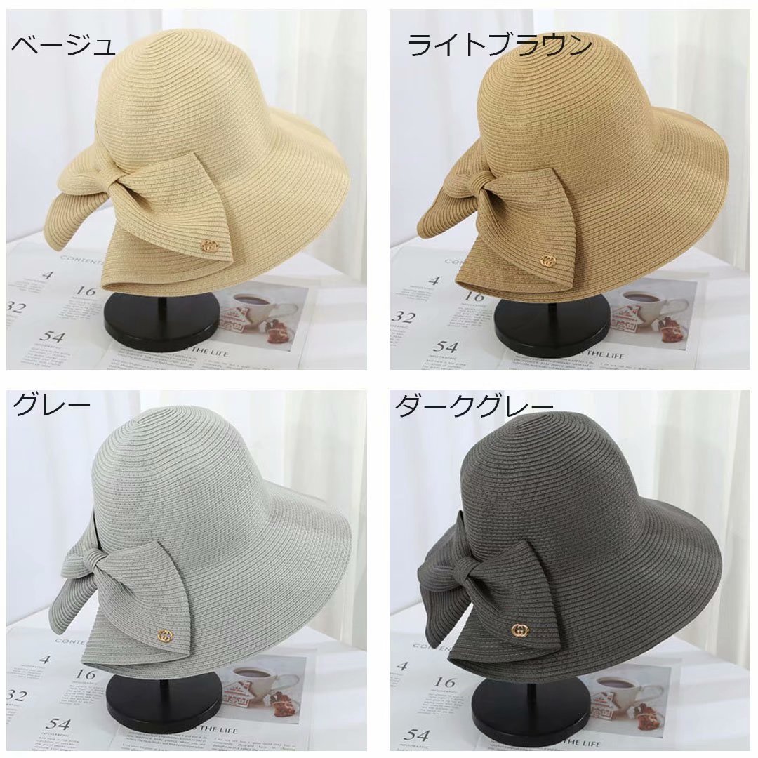 大きめリボンがポイント 麦わら ハット 帽子 レディース帽子 麦わら帽子 続々入荷中 ベージュ ライトブラウン グレー ダークグレー ブラック ピンク レッド