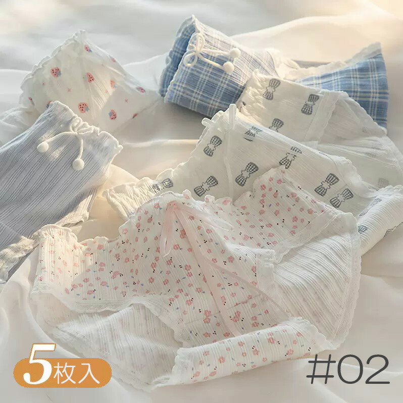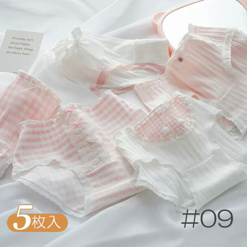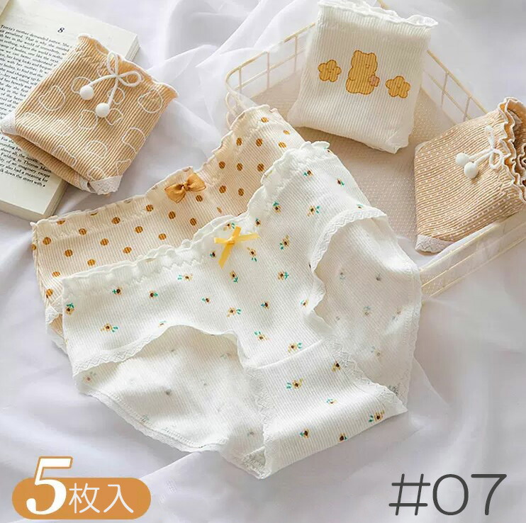 ラブリーなデザイン!5枚セット ショーツセット スタンダードショーツ ランジェリー 学生 下着 かわいい パンティパンツ リボン インナー 女子高生 中学生 ショーツ 高校生