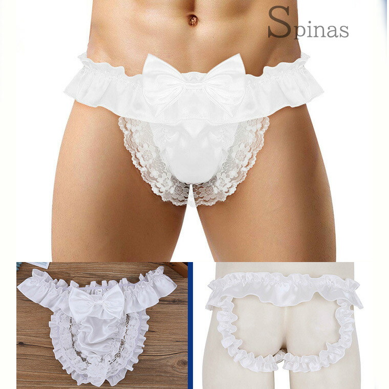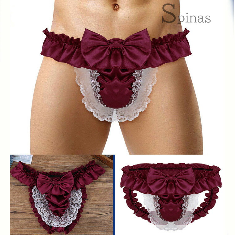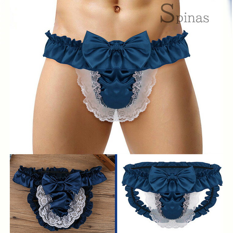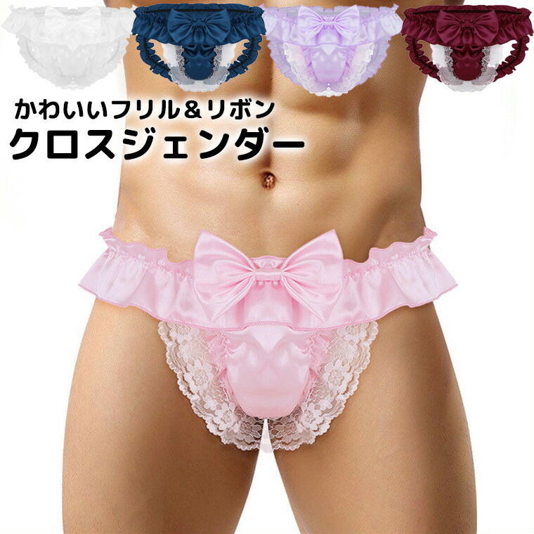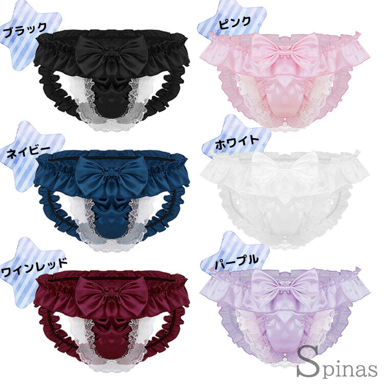 ふりふりフリルと大きなリボン レース メンズ インナー 下着 ブリーフ 新作 M L XL ブラック ピンク ネイビー ホワイト ワインレッド パープル