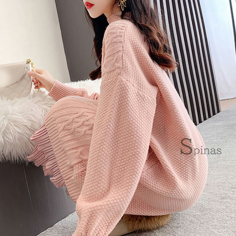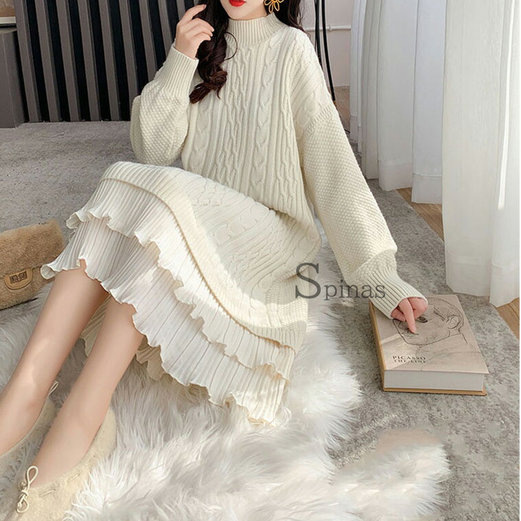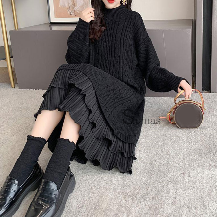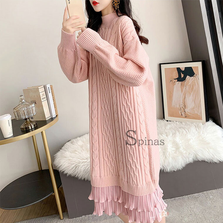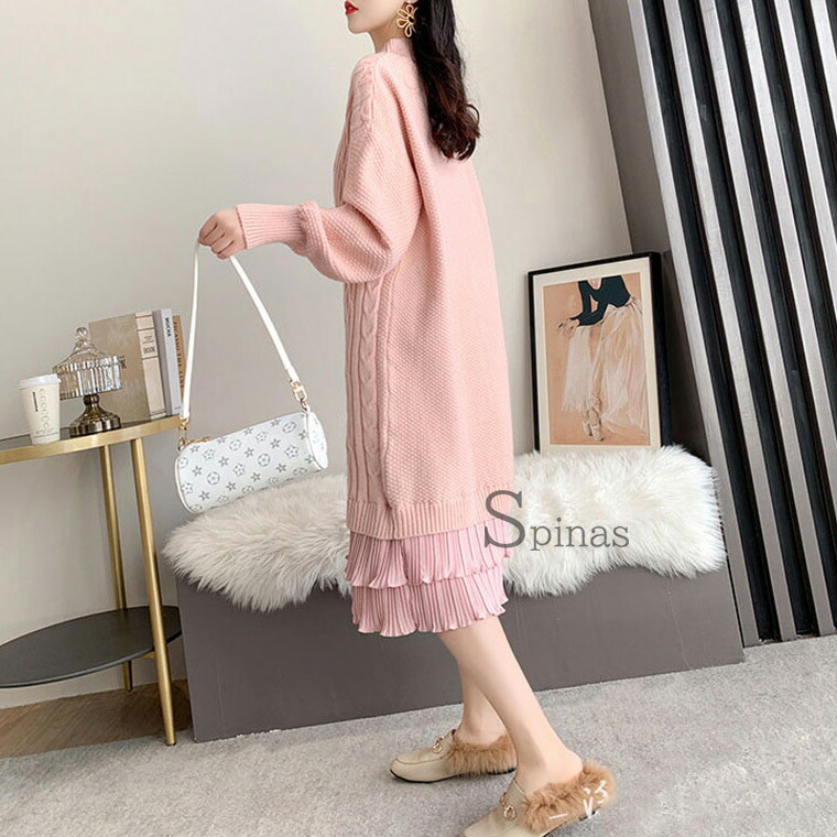 M-3XLまで やわらか上品ニット 裾 ワンピース 続々登場 ピンク ホワイト ブラック M L XL 2XL 3XL