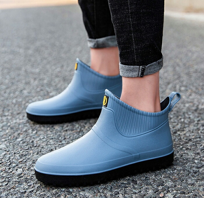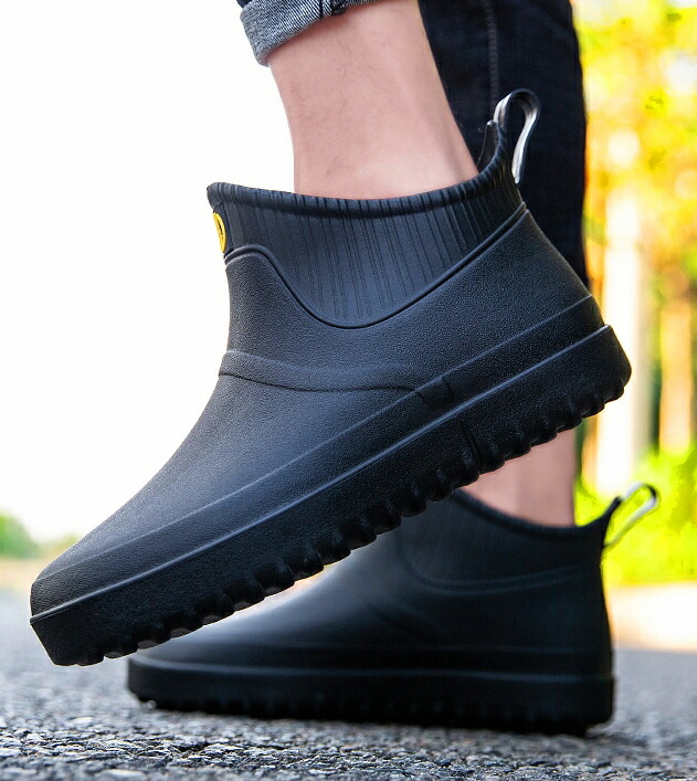 日常使い、アウトドアシーンでも大活躍!全4色 メンズ レインブーツ レインシューズ ショート丈 履きやすい 防水 快適 レジャー 通勤 厚底 ノンスリップレイン 雨靴 24.5~27.5cm
