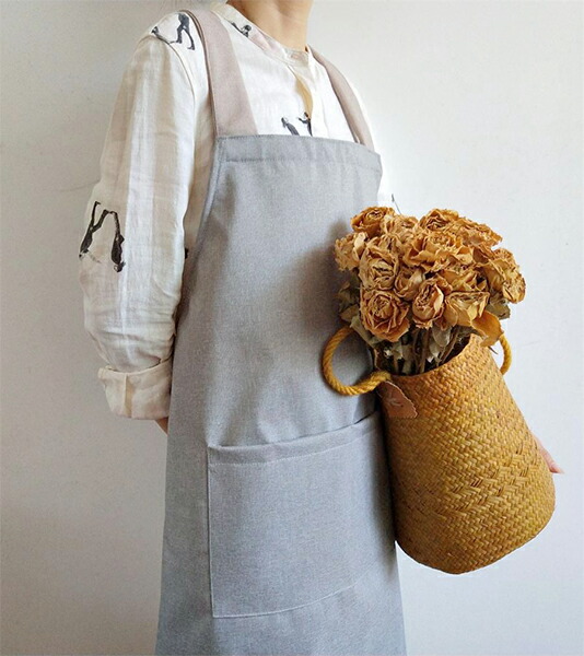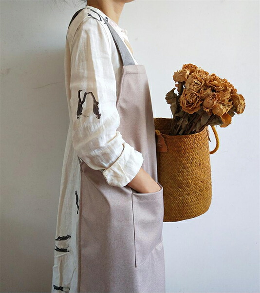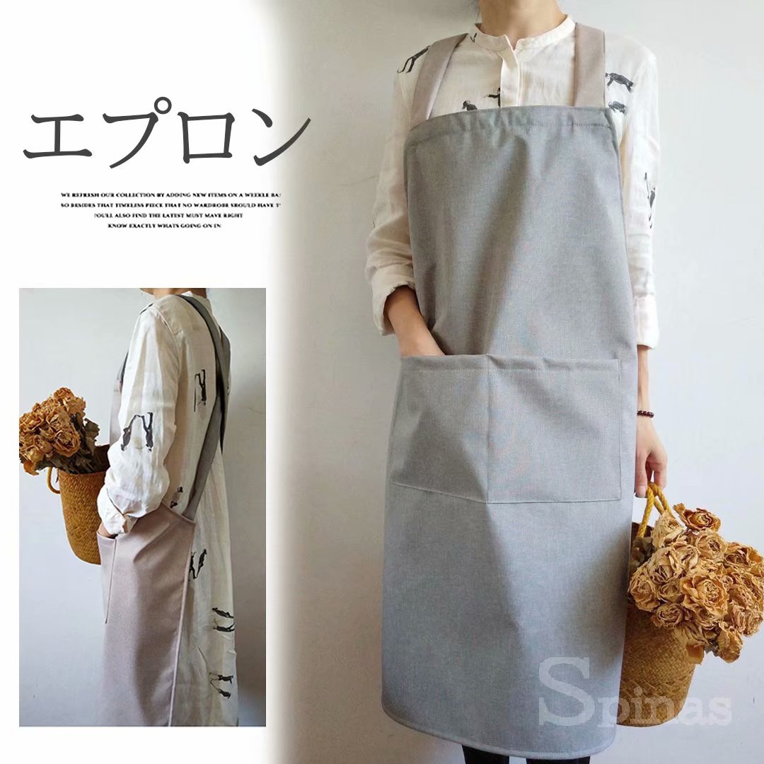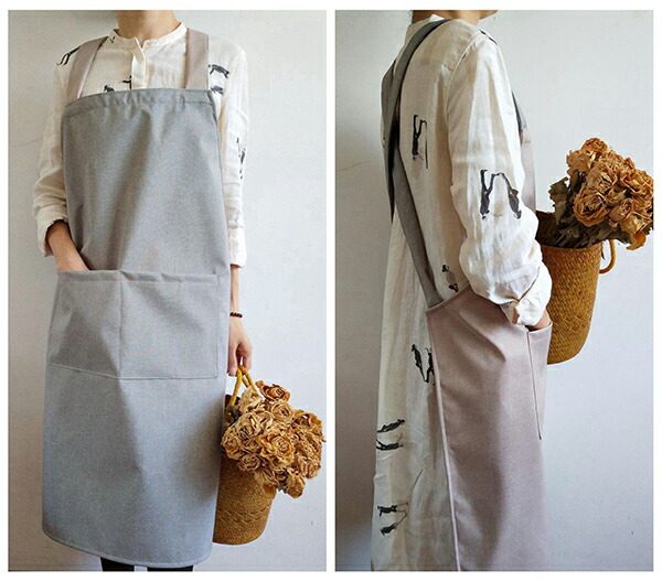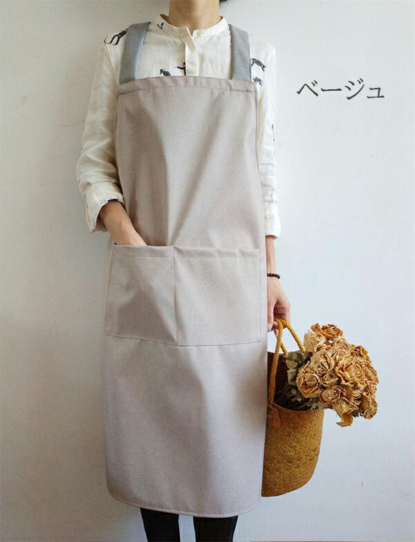 スポッとかぶるだけで簡単着脱 ミドル丈 配膳用品 キッチンファブリック エプロン 三角巾 エプロン 新登場! ベージュ グレー