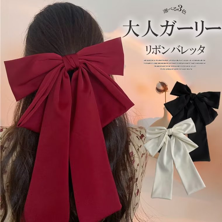 大人ガーリーと相性抜群 ビッグリボン リボンバレッタ ヘアアクセサリー 大きいリボン りぼん 髪飾り 小顔効果 パーティー 発表会 ヘアアレンジ まとめ髪 お呼ばれ