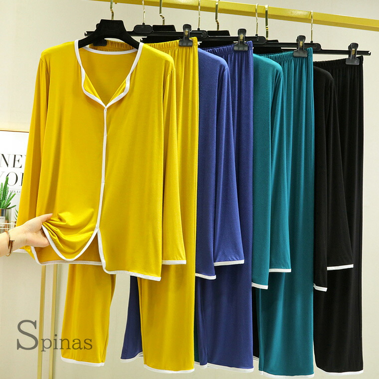 リラックスできる柔らかな着心地 パジャ レディース ナイトウェア ルームウェア パジャマ 続々登場 L XL 2XL 3XL ブラック イエロー ベージュ ターコイズ ピンク ライトブルー ブルー パープル