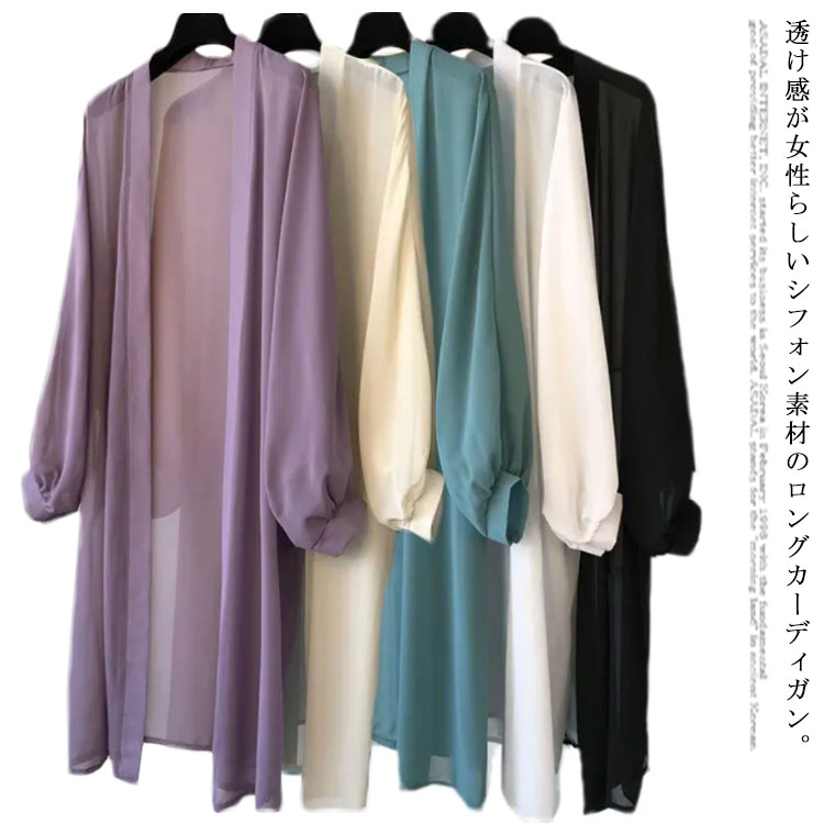 ロングカーディガン レディース 透け感 レディースファッション 続々入荷中 ブラック アプリコット ホワイト 紫 グリーン M L XL