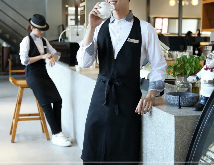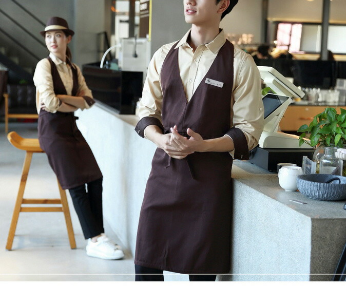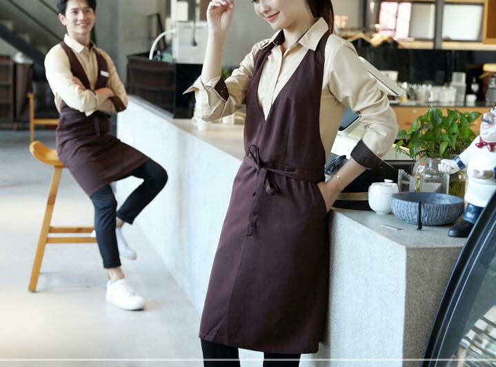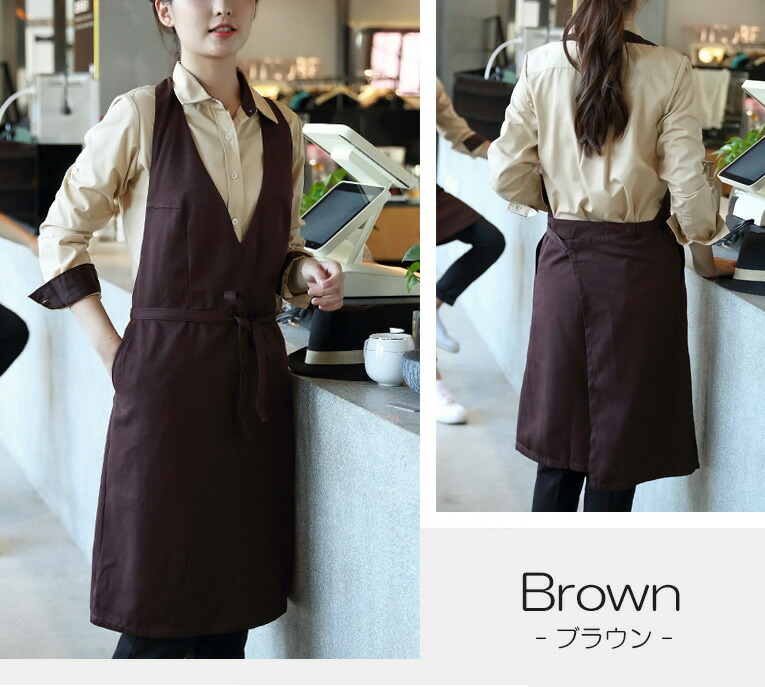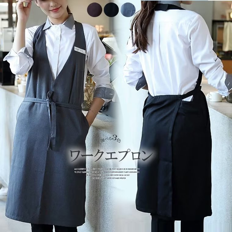 スッキリとした着こなし Vネック ワン 配膳用品 キッチンファブリック エプロン 三角巾 エプロン 超目玉商品 ブラック ブラウン グレー