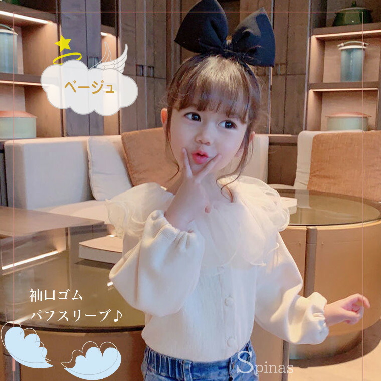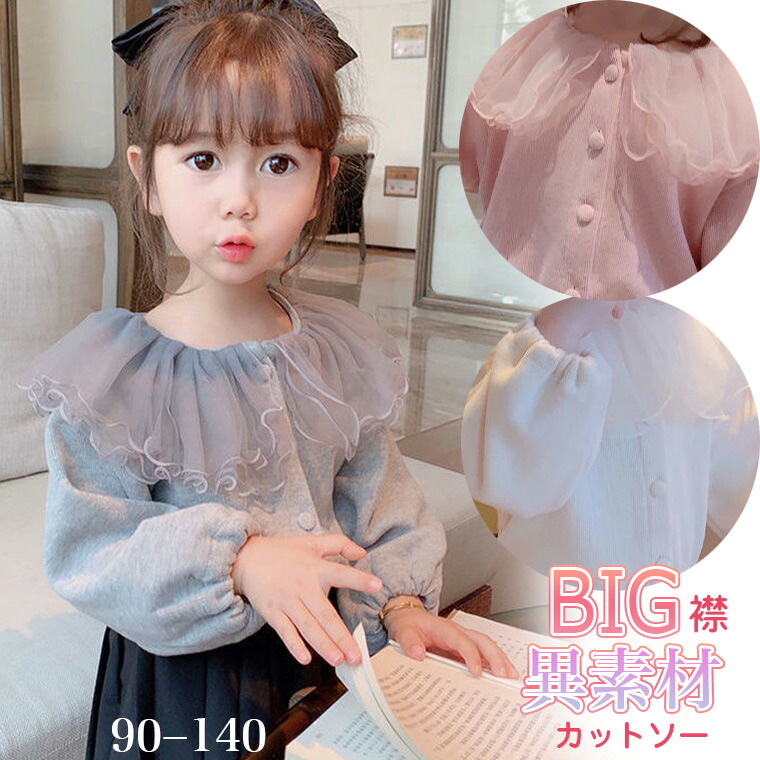 BIG襟 パステルカラー 異素材カット キッズ トップス Tシャツ カットソー 新登場! 90 100 110 120 130 140 ピンク ベージュ グレー