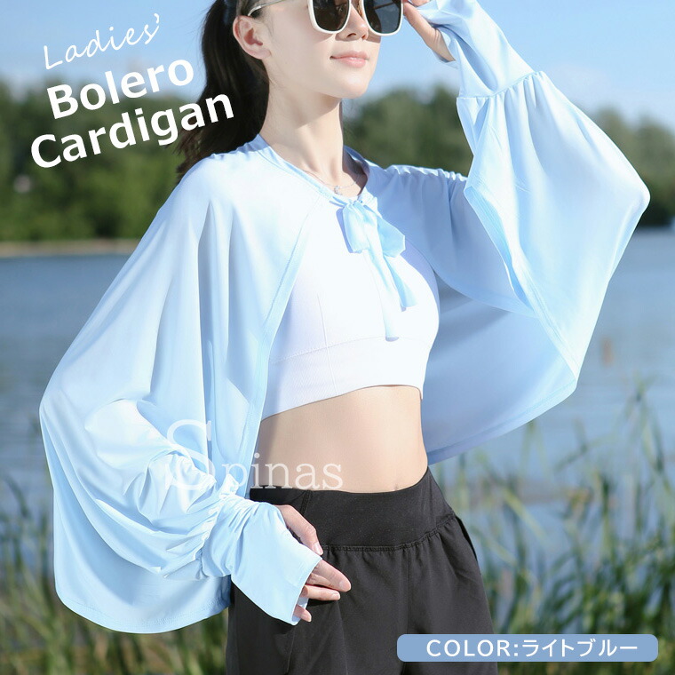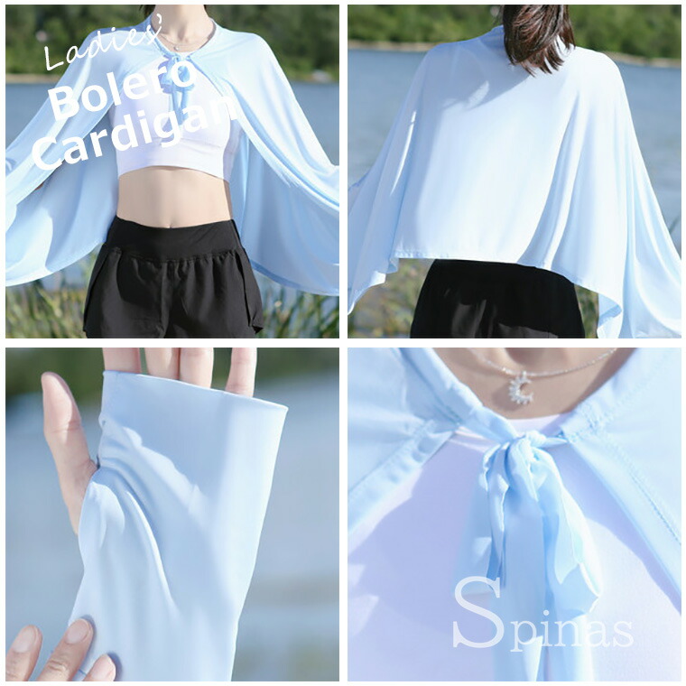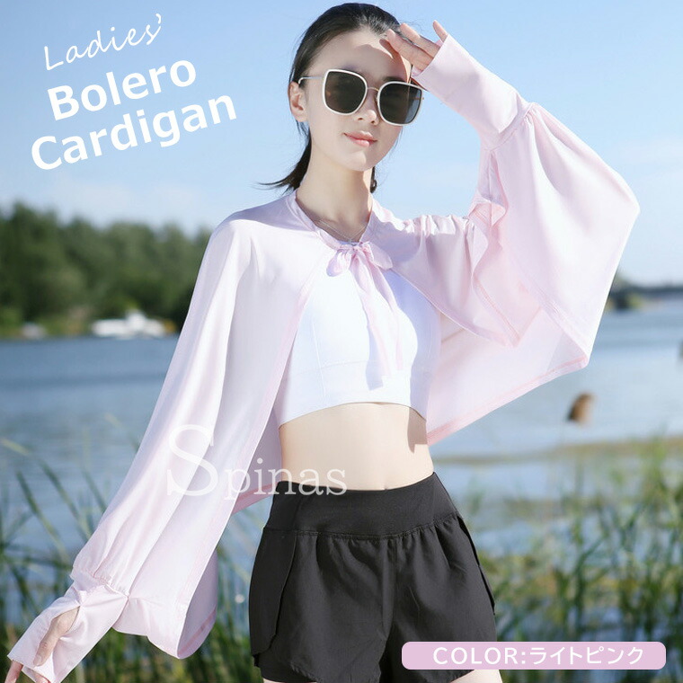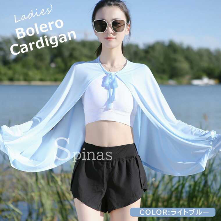 日よけ 冷房対策におすすめな1枚 UV トップス カーディガン ボレロ 続々入荷中 ホワイト ライトグレー ブラック ライトブルー ライトピンク ピンク