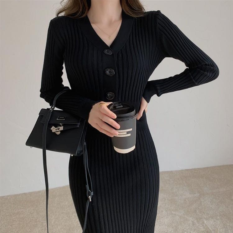 ニットワンピース ロング レディース ワンピース 新登場! ブラック アイボリー ホワイト ワインレッド S M L XL