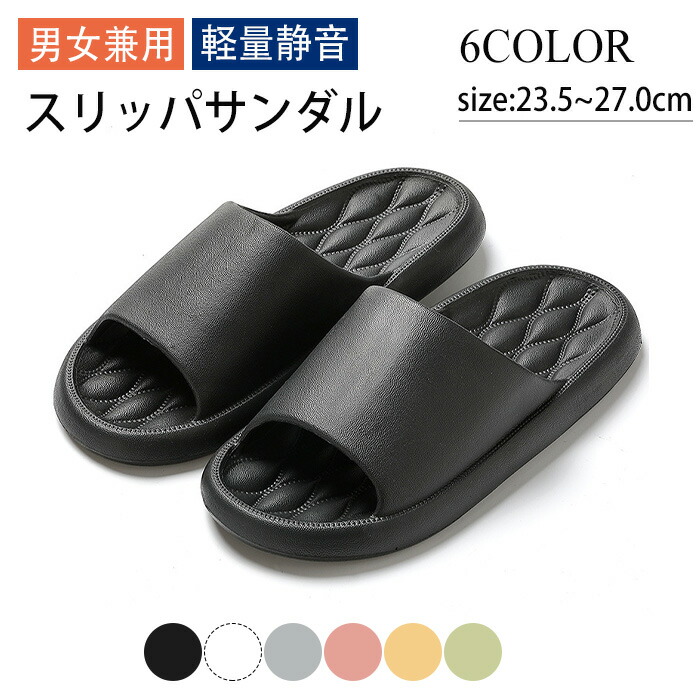 スリッパサンダル 軽量 EVA ローヒ 生活雑貨 スリッパ ルームシューズ スリッパ 通販 ブラック ホワイト グレー ピンク イエロー グリーン 36-37(内寸23.5cm) 38-39(内寸24.5cm) 40-41(内寸25.5cm) 42-43(内寸26.5cm) 44-45(内寸27cm)