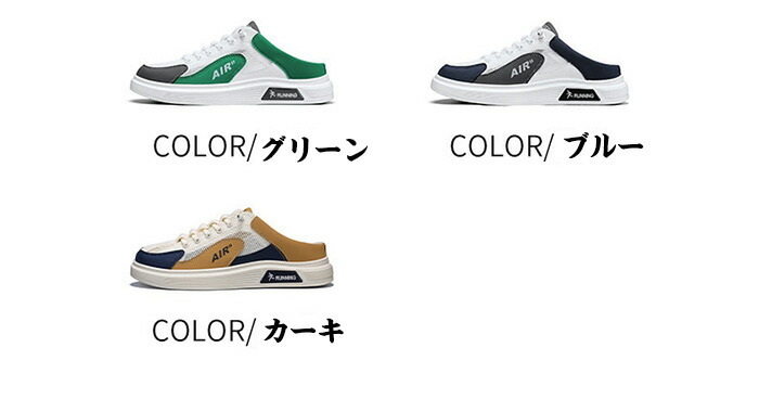 メンズ かかとなしスニーカー かっこい メンズ靴 スリッポン 新作 カーキ グリーン ブルー 39(内寸24.5cm) 40(内寸25.0cm) 41(内寸25.5cm) 42(内寸26.0cm) 43(内寸26.5cm) 44(内寸27.0cm)