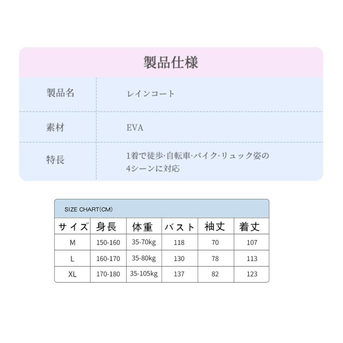 レインコート 自転車 レディース 自転 レインウエア レインコート 新作 ブルー ピンク イエロー ホワイト パープル M L XL