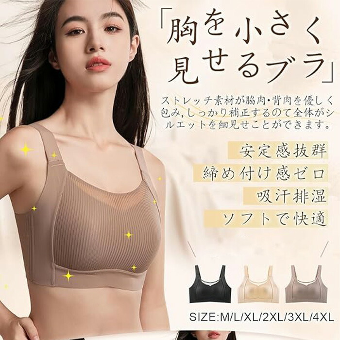 胸を小さく見せるブラ 小さく見せるブラ レディース インナー 下着 ブラジャー 特集 ブラック 肌色 ホワイト ブラウン M L XL 2XL 3XL 4XL