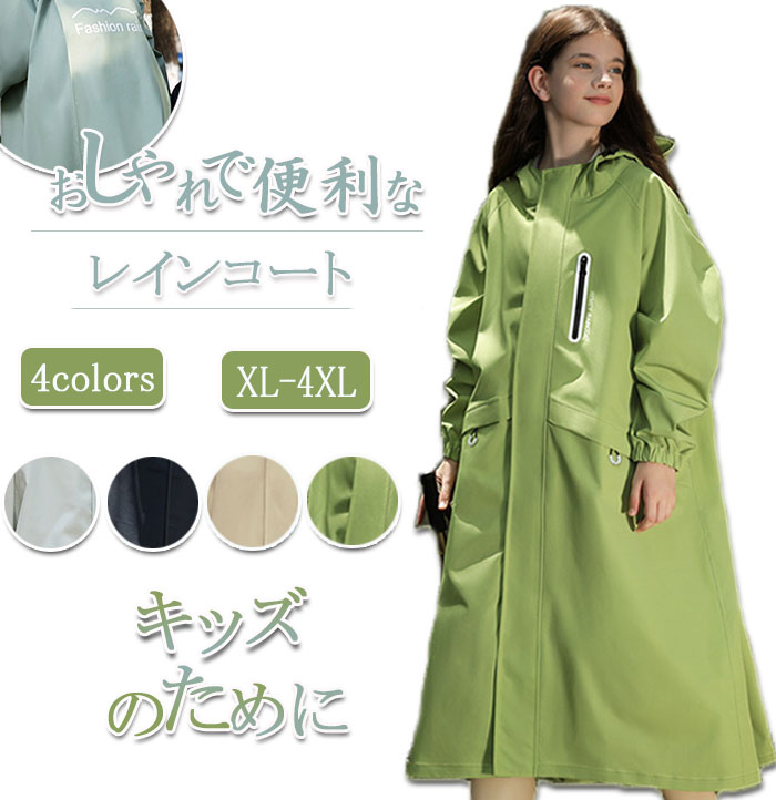 ランドセル対応 バイカラーレインコート キッズ レインウェア 傘 レインコート 特集 グリーン1 グリーン2 カーキ ブラック XL(身長115-130cm) 2XL(身長130-140cm) 3XL(身長140-150cm) 4XL(身長150-160cm)