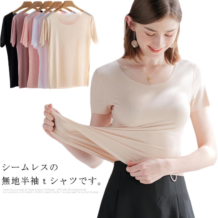 tシャツ 半袖 レディース シームレス レディースファッション 人気 ホワイト ブラック オレンジピンク レンコンピンク ベージュ M L XL 2XL