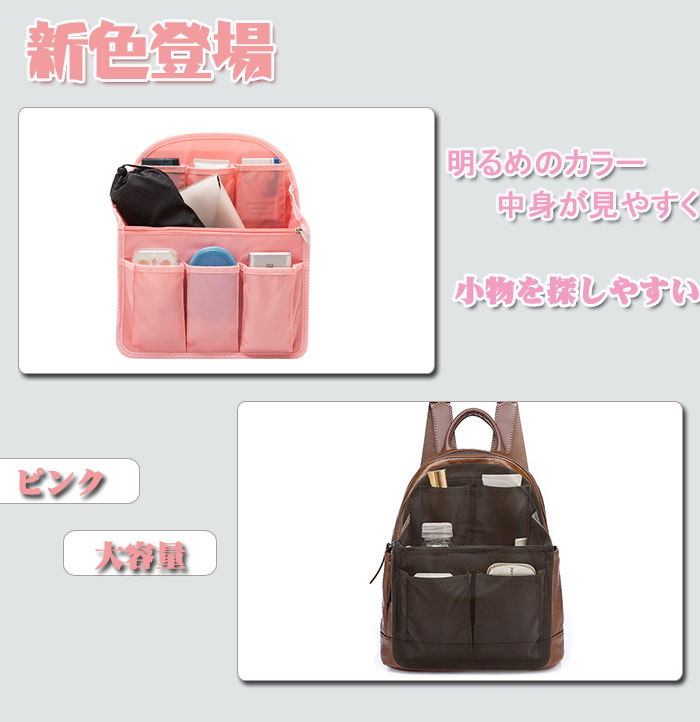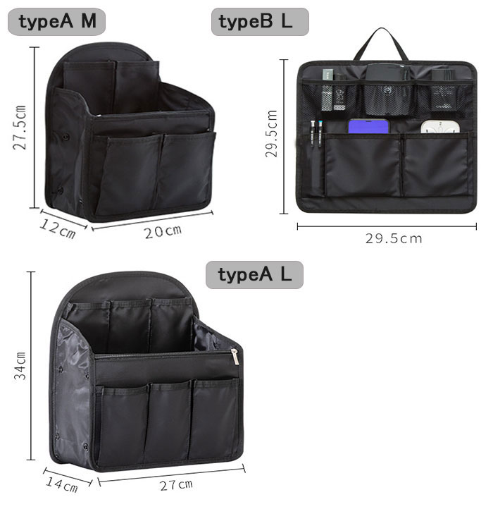 バッグインバッグ リュック 収納整理 ブラックtypeA M ブラックtypeA L ブラックtypeB L ピンクtypeA L