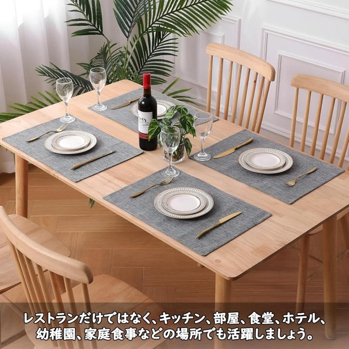 ランチョンマット 4枚セット和風テーブ 配膳用品 キッチンファブリック キッチンマット 人気 ブルー01 ベージュ ダークグレー ブラック ブラウン ブルー02 グリーン