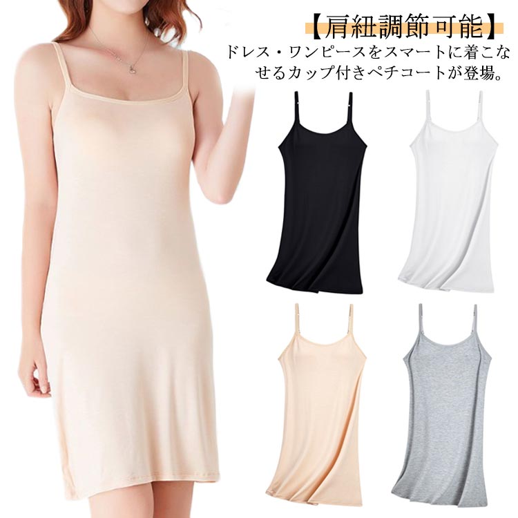カップ付き キャミソール ロング ペチ レディース インナー 下着 インナーキャミソール 早い者勝ち ブラック ベージュ ホワイト グレー M L XL 2XL