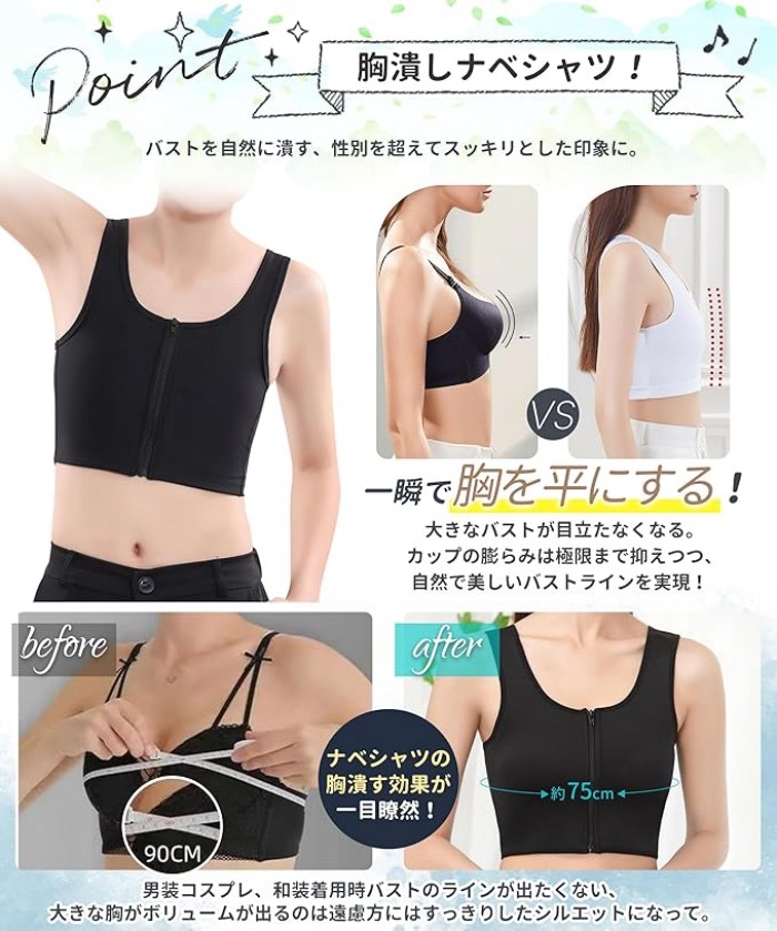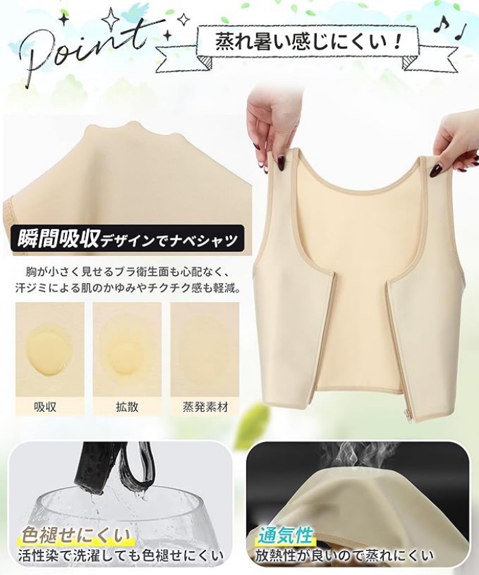 ナベシャツ 胸が小さく見せるブラ Cか インナー 下着 ナイトウエア 特集 ブラック 肌色 ホワイト S M L XL 2XL