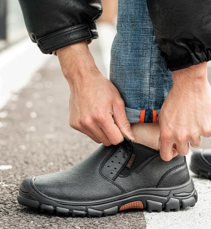 【安全性重視】靴の先は鋼鉄の芯を内蔵して、仕事中に硬いものが衝突したり、重いものが落ちたりした時、足の指を効果的に保護します。穿刺力に耐え、釘から足裏をしっかり守ります。鋼先芯と釘踏み抜き防止機能が搭載されており、工事現場や危険な作業環境でも安心して使用できます。足裏とつま先をしっかりと保護します。