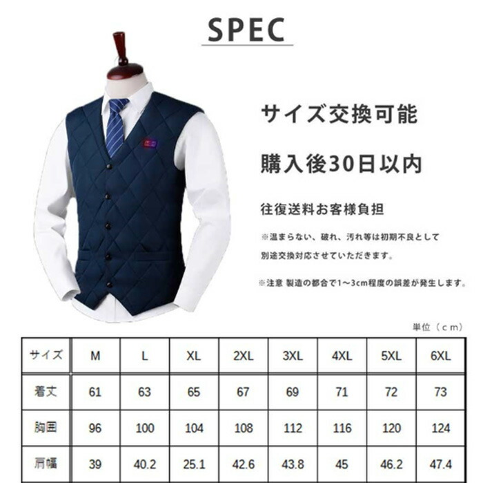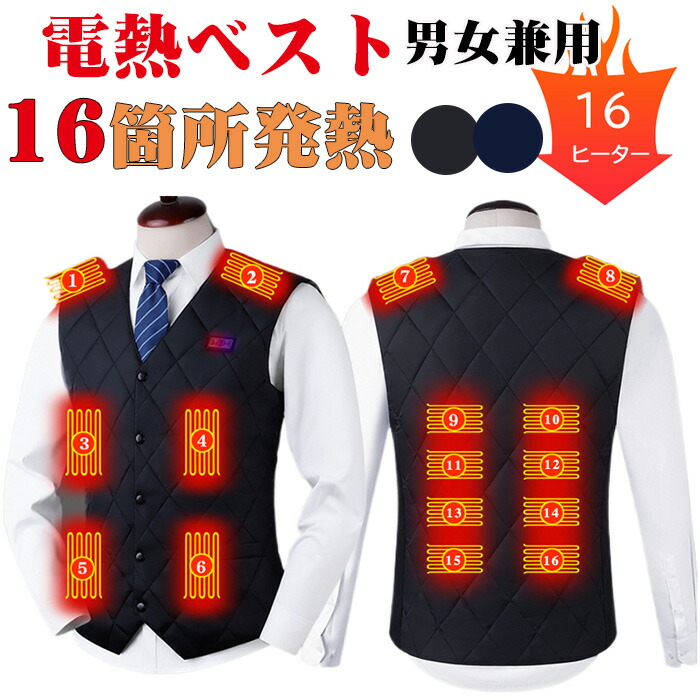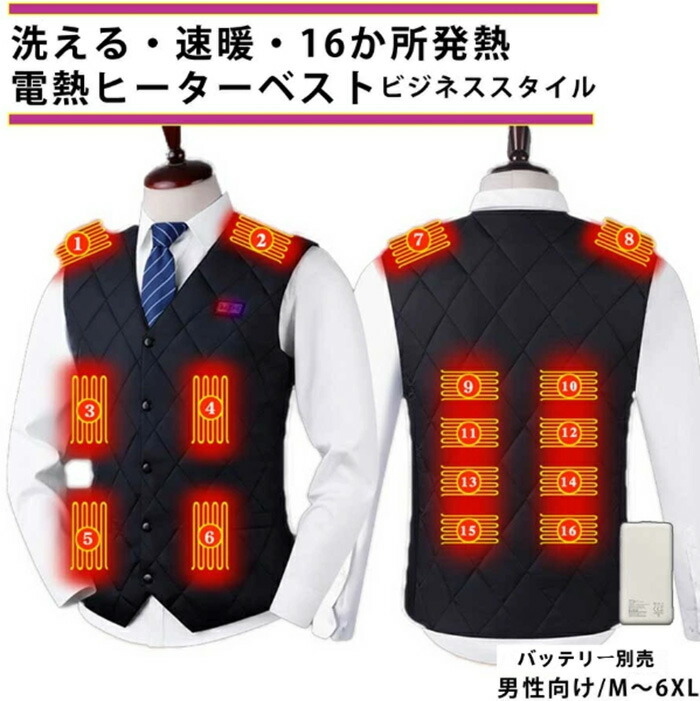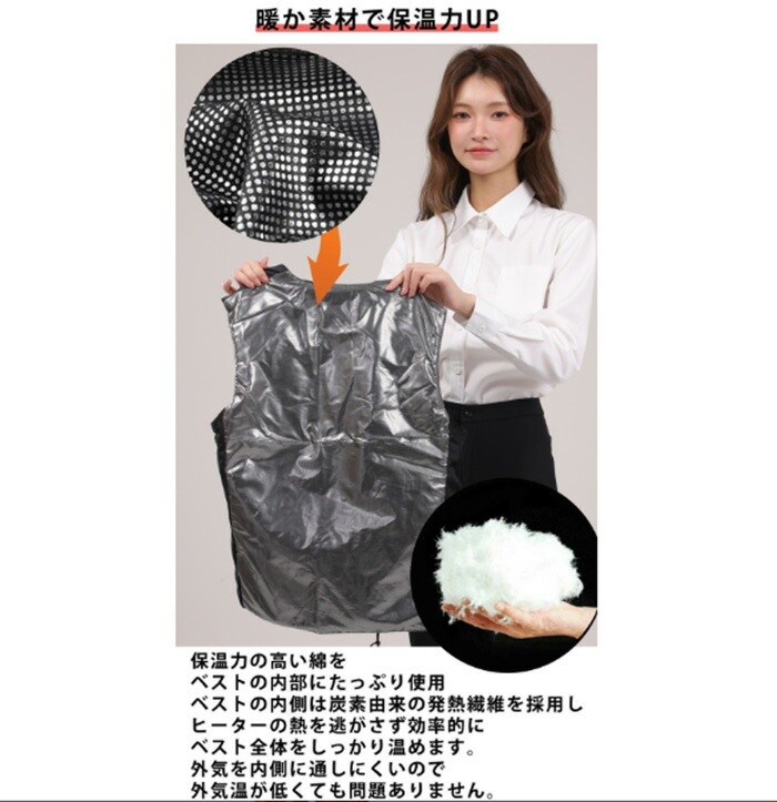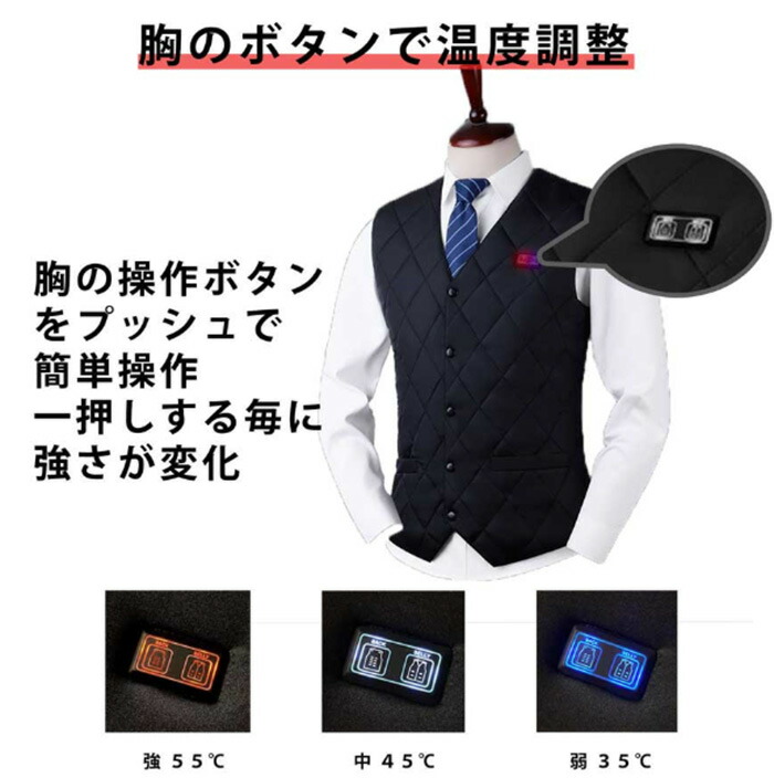バッテリー付き 3段温度調整 ヒーター トップス ベスト ジレ 豊富 ブラック ネイビー M L XL 2XL 3XL 4XL 5XL 6XL