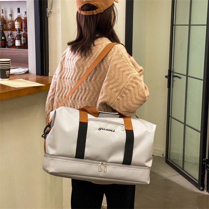 ◆4WAYで使える多機能性/このバッグは、手提げ、ショルダー、斜め掛け、そしてキャリーオンの4WAYで使用できる多機能バッグです。特に、スーツケースに取り付け可能なデザインが旅行や出張時に便利で、キャリーオンバッグとしても大活躍。ショルダーストラップは調節可能で、斜め掛けや肩掛けとしても使用できるため、長時間の移動でも快適に使えます。さらに、ヨガマットや嵩張る上着など大きめのアイテムを収納できる外部ストラップも搭載されており、ヨガやジムに通う人にとっても非常に便利なアイテムです。この軽量設計により、荷物が多い日でも負担を感じず、スポーツバッグやジムバッグとしても理想的です。修学旅行や2泊3日の短期旅行でも、快適に使える仕様となっています。