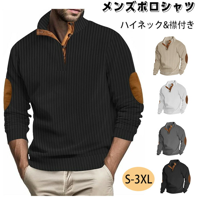 ポロシャツ メンズ スウェット長袖 ボ トップス スウェット トレーナー 続々入荷中 ホワイト ブラック ダークグレー カーキ S M L XL 2XL 3XL
