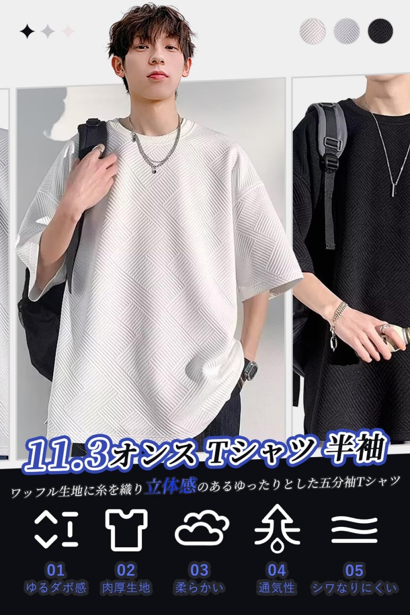 Tシャツ メンズ 半袖 5分袖 厚手 トップス Tシャツ カットソー 通販 ブラック ホワイト グレー M L XL 2XL 3XL 4XL 5XL