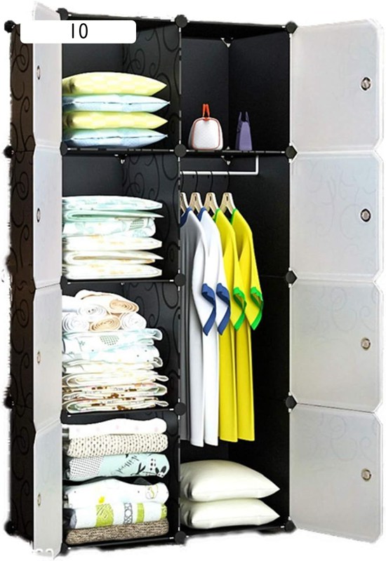 格子の間の仕切り板を取り除いて、2つの格子が一つの大きな格子になって、パッケージに含まれる吊り棒を使って、服をかけるクローゼットを作ることができます。