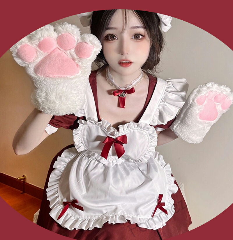 メイド服 コスプレ 猫 ネコ耳 かわい コスプレ 変装 仮装 コスチューム一式 続々登場 ワインレッド ライトブルー キャンディピンク クラシックブラック S M L XL 2XL 3XL 4XL 5XL